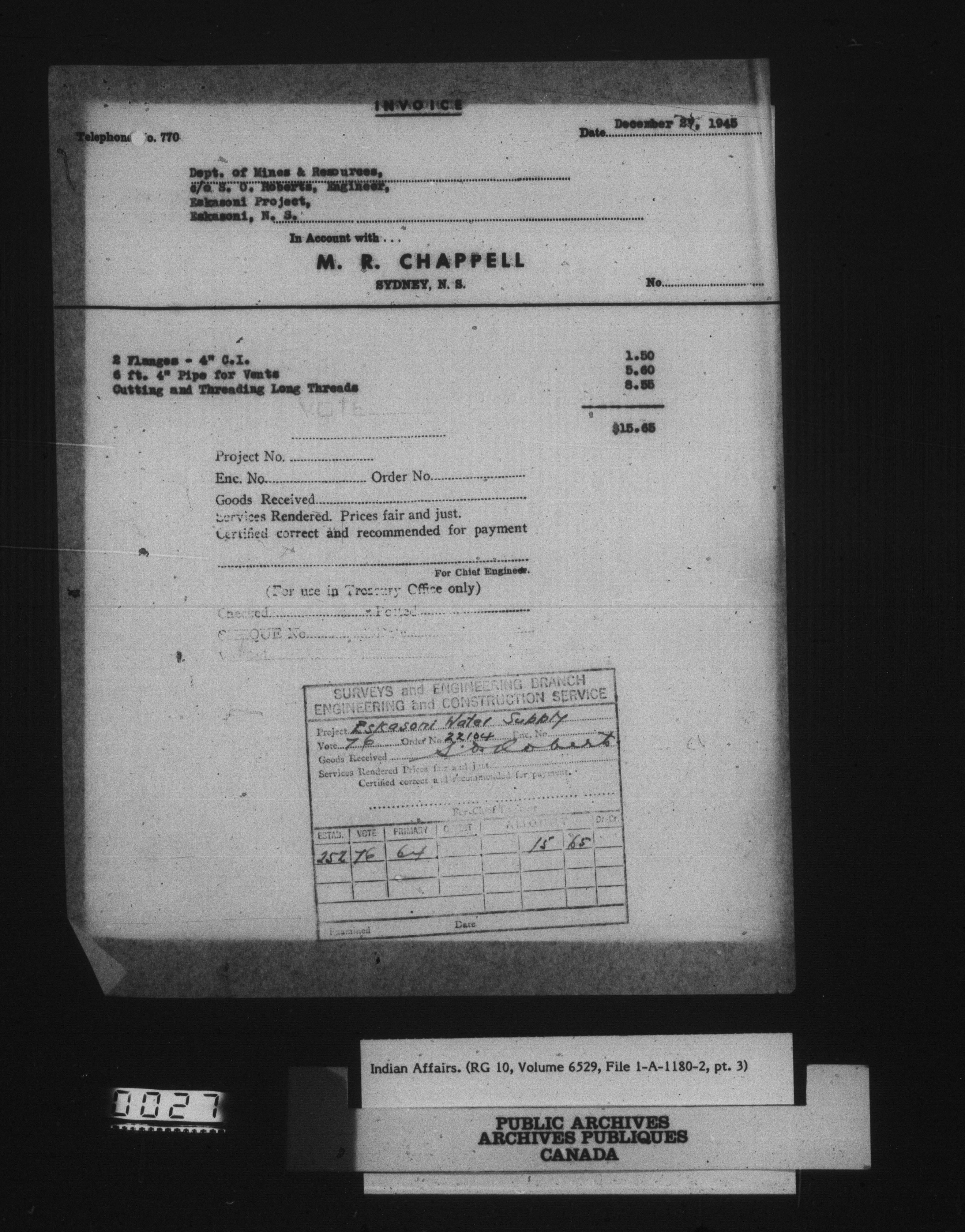 Department of Indian Affairs, Headquarters central registry system : engineering and construction files series - 15055