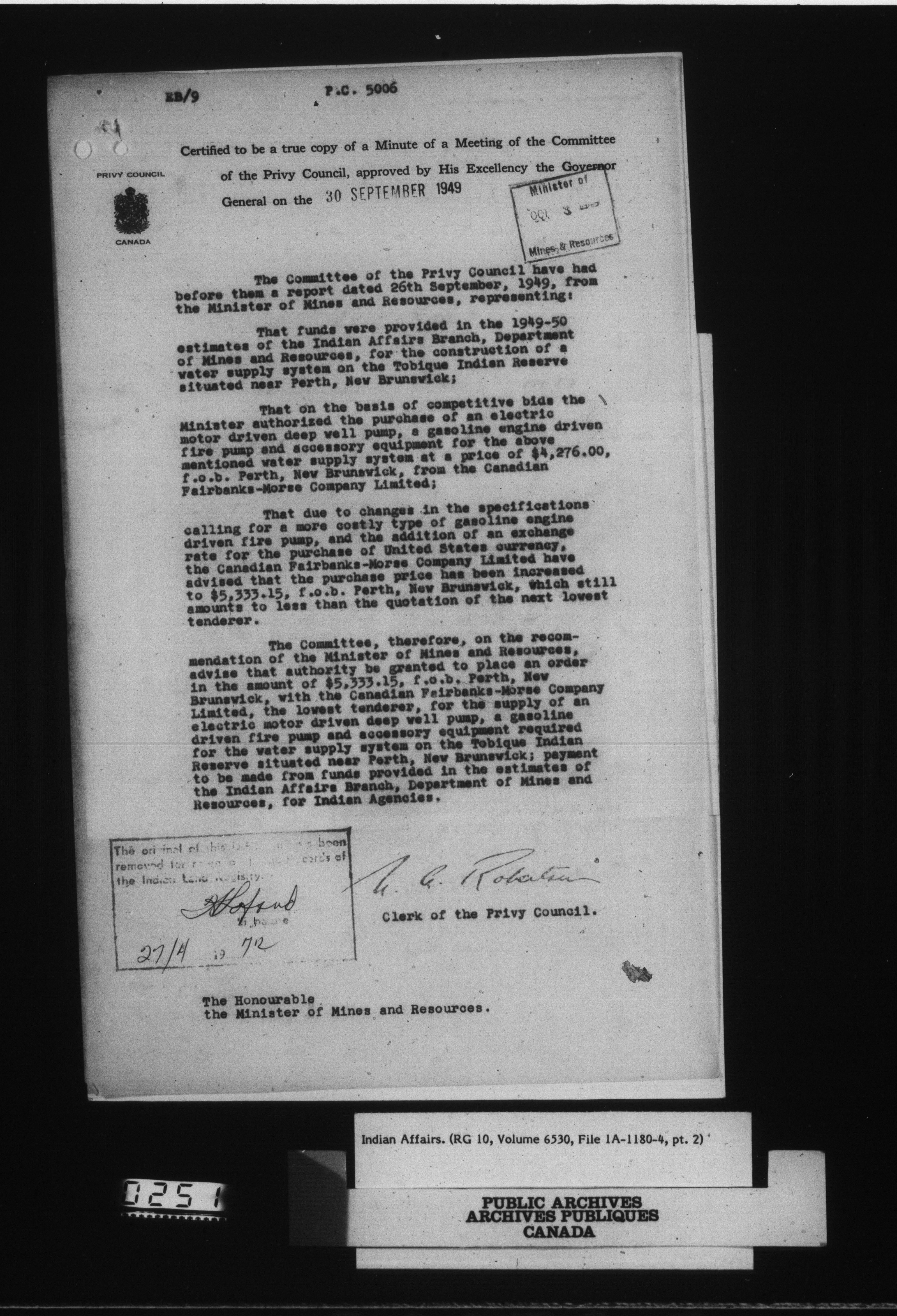 Department of Indian Affairs, Headquarters central registry system : engineering and construction files series : C-15056