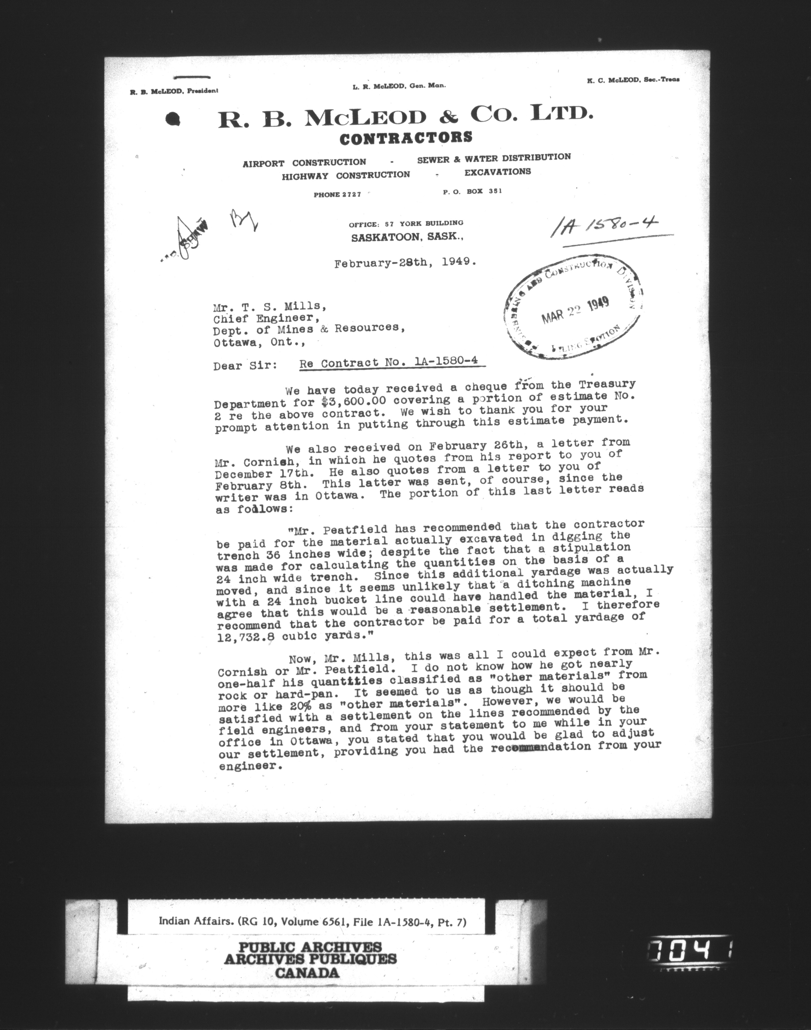 Department of Indian Affairs, Headquarters central registry system : engineering and construction files series - 15075