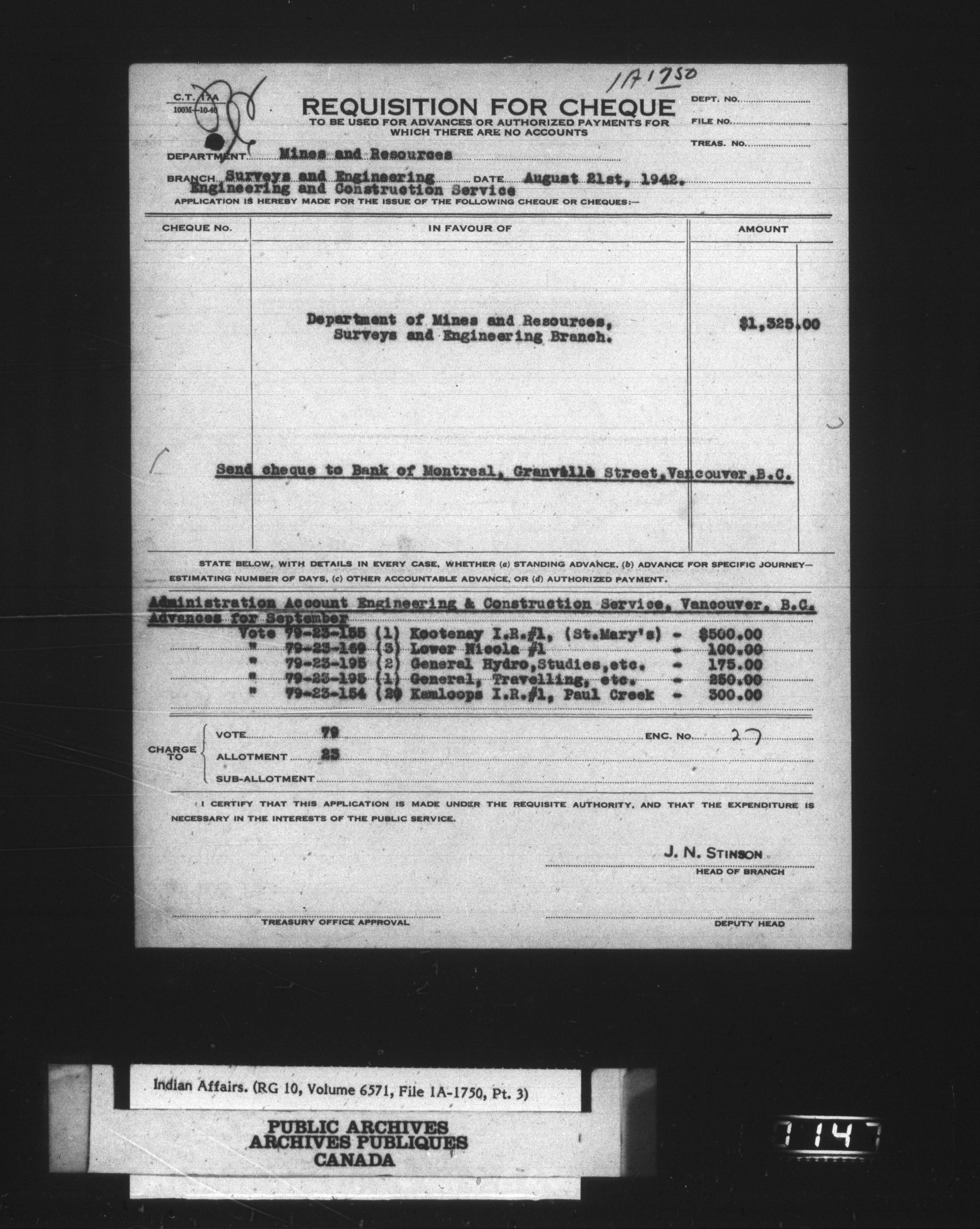 Department of Indian Affairs, Headquarters central registry system : engineering and construction files series - 15080