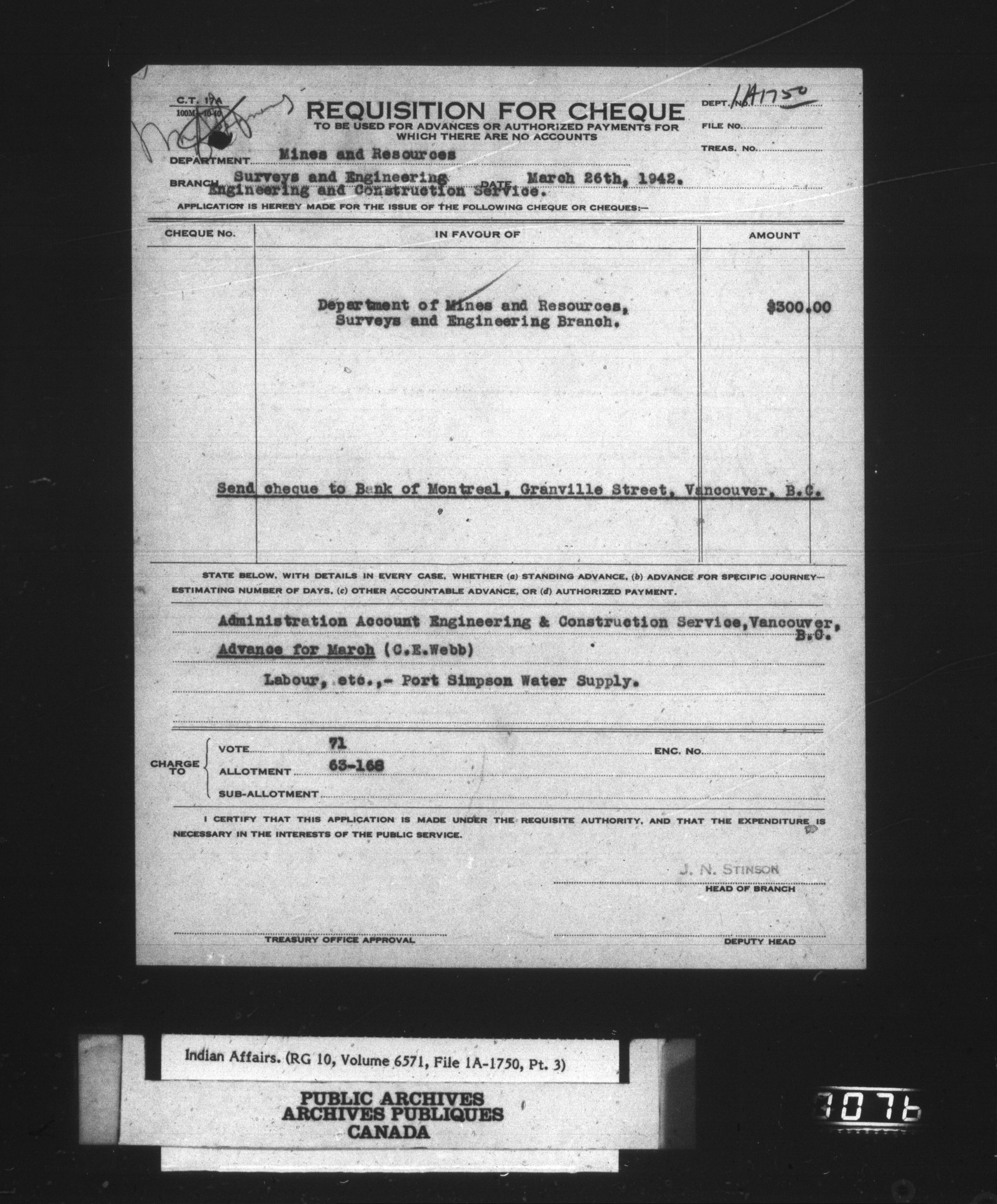 Department of Indian Affairs, Headquarters central registry system : engineering and construction files series - 15080