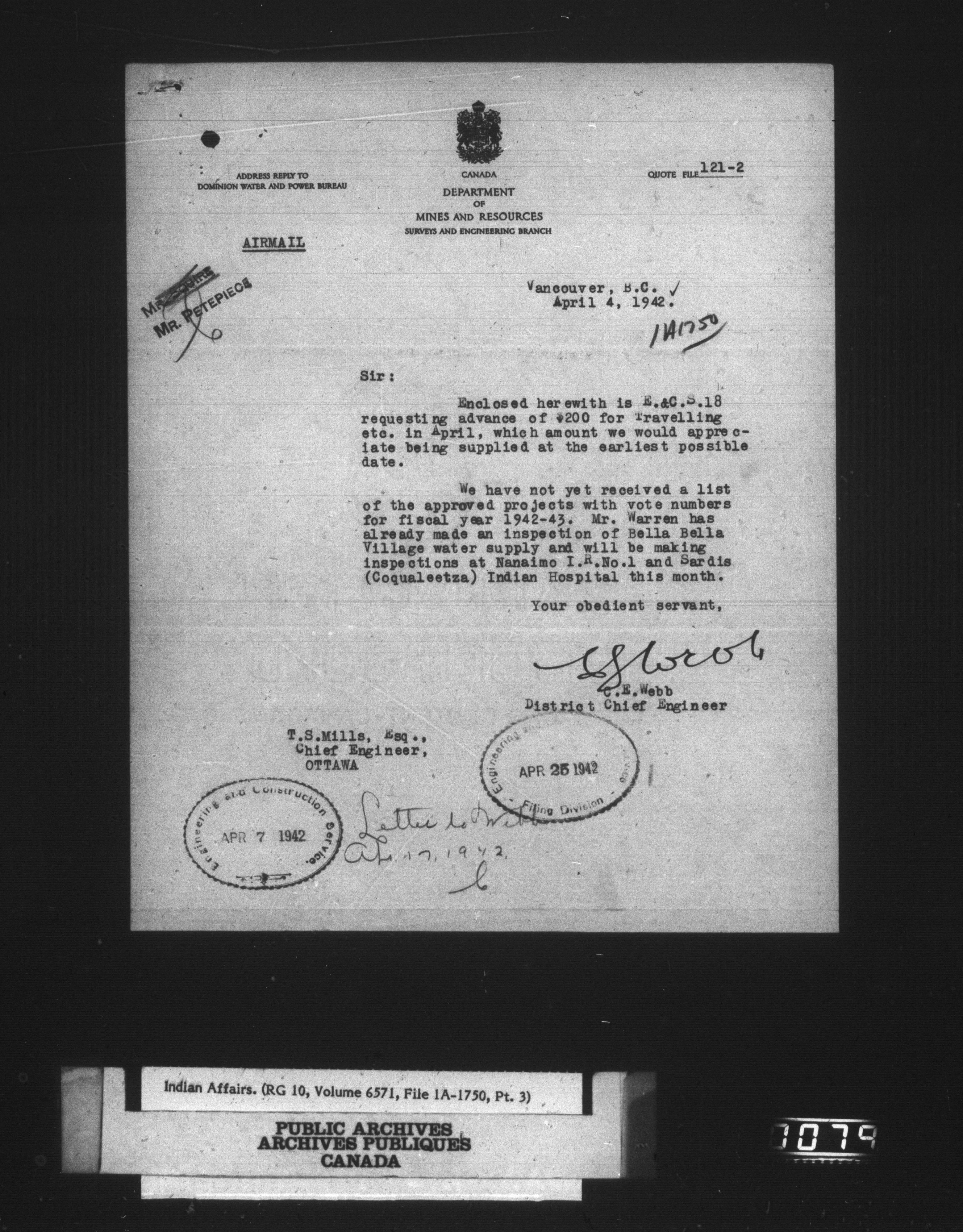 Department of Indian Affairs, Headquarters central registry system : engineering and construction files series : C-15080