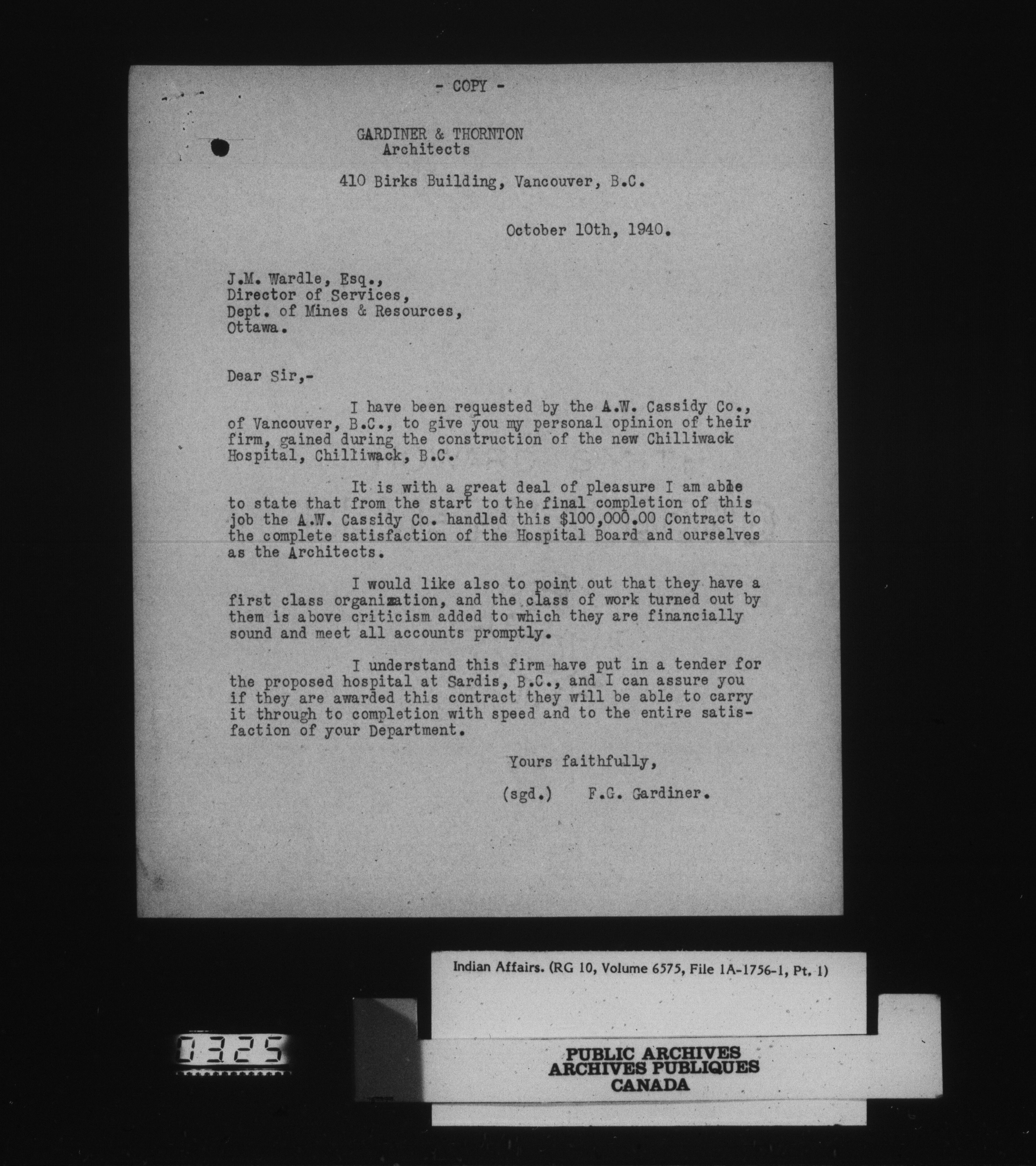 Department of Indian Affairs, Headquarters central registry system : engineering and construction files series : C-15083