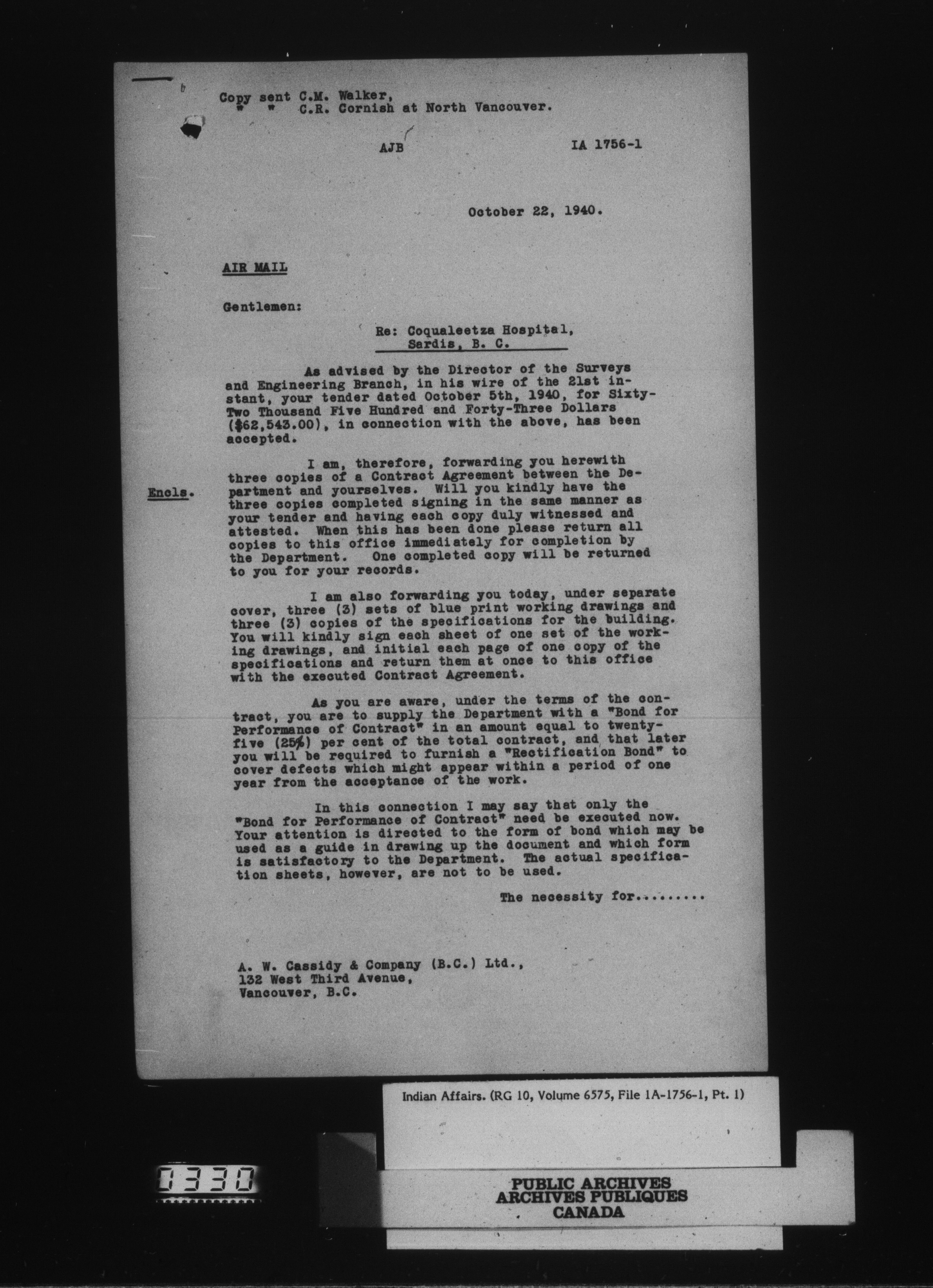 Department of Indian Affairs, Headquarters central registry system : engineering and construction files series : C-15083
