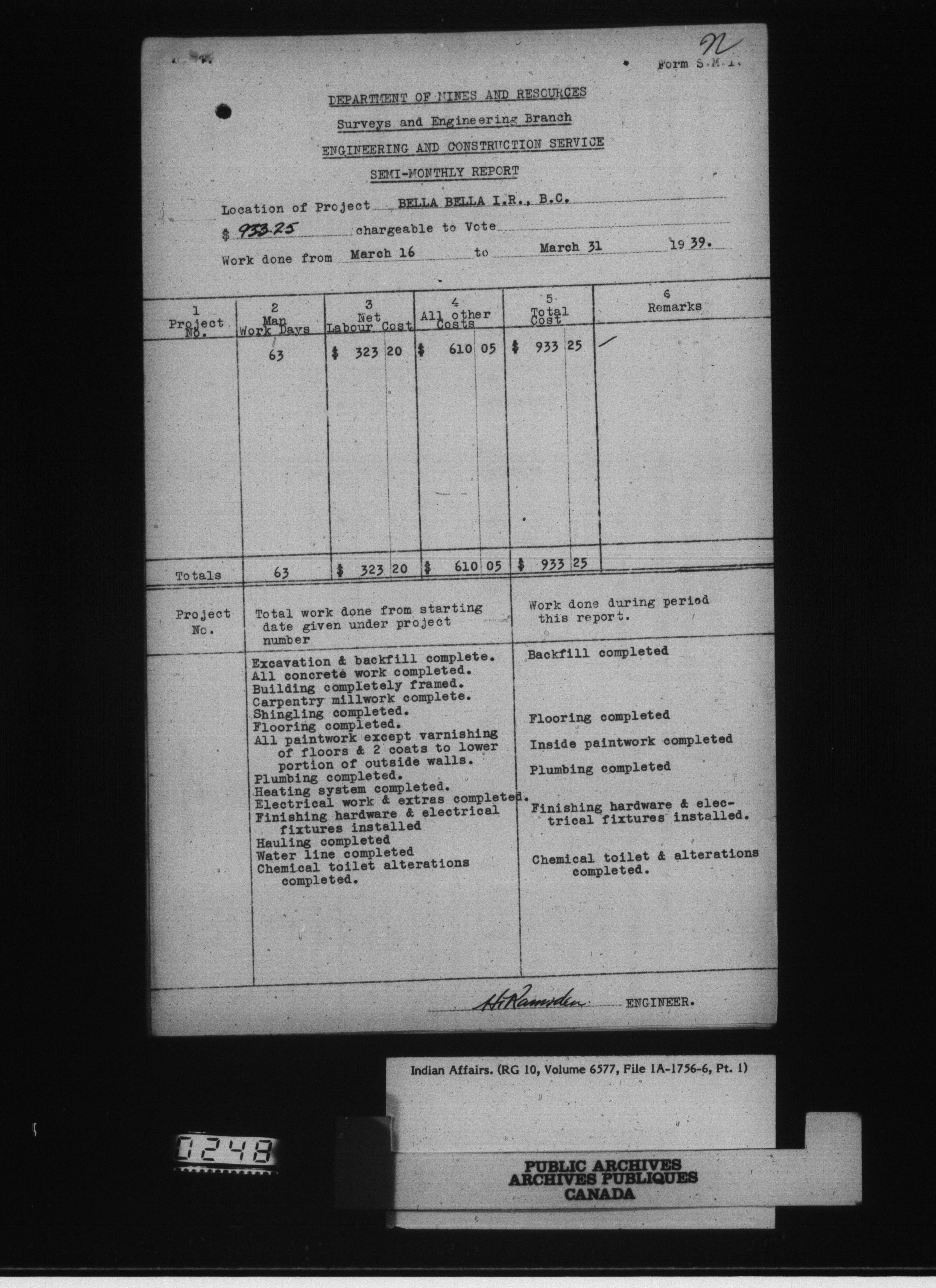 Department of Indian Affairs, Headquarters central registry system : engineering and construction files series - 15085