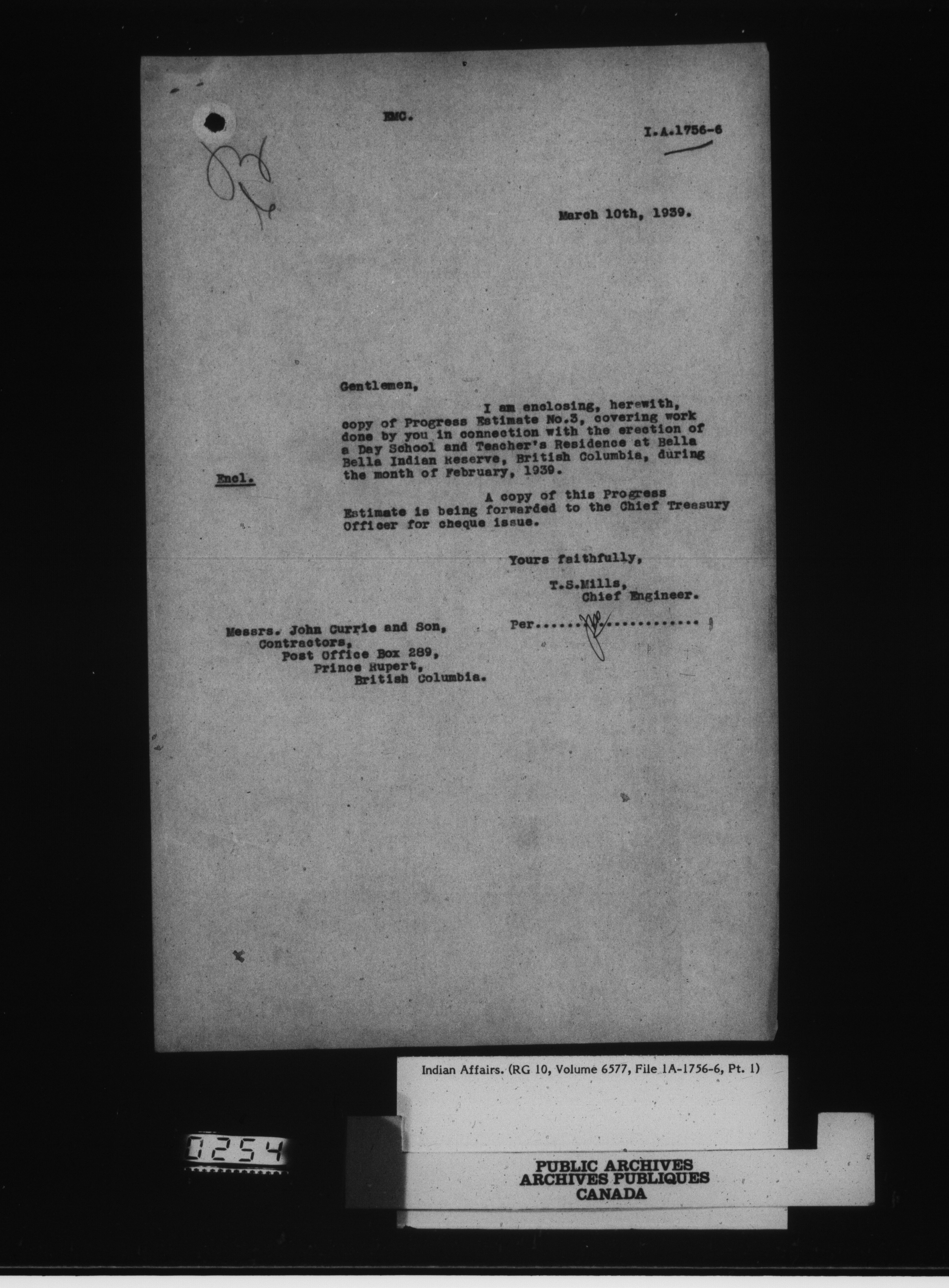 Department of Indian Affairs, Headquarters central registry system : engineering and construction files series - 15085