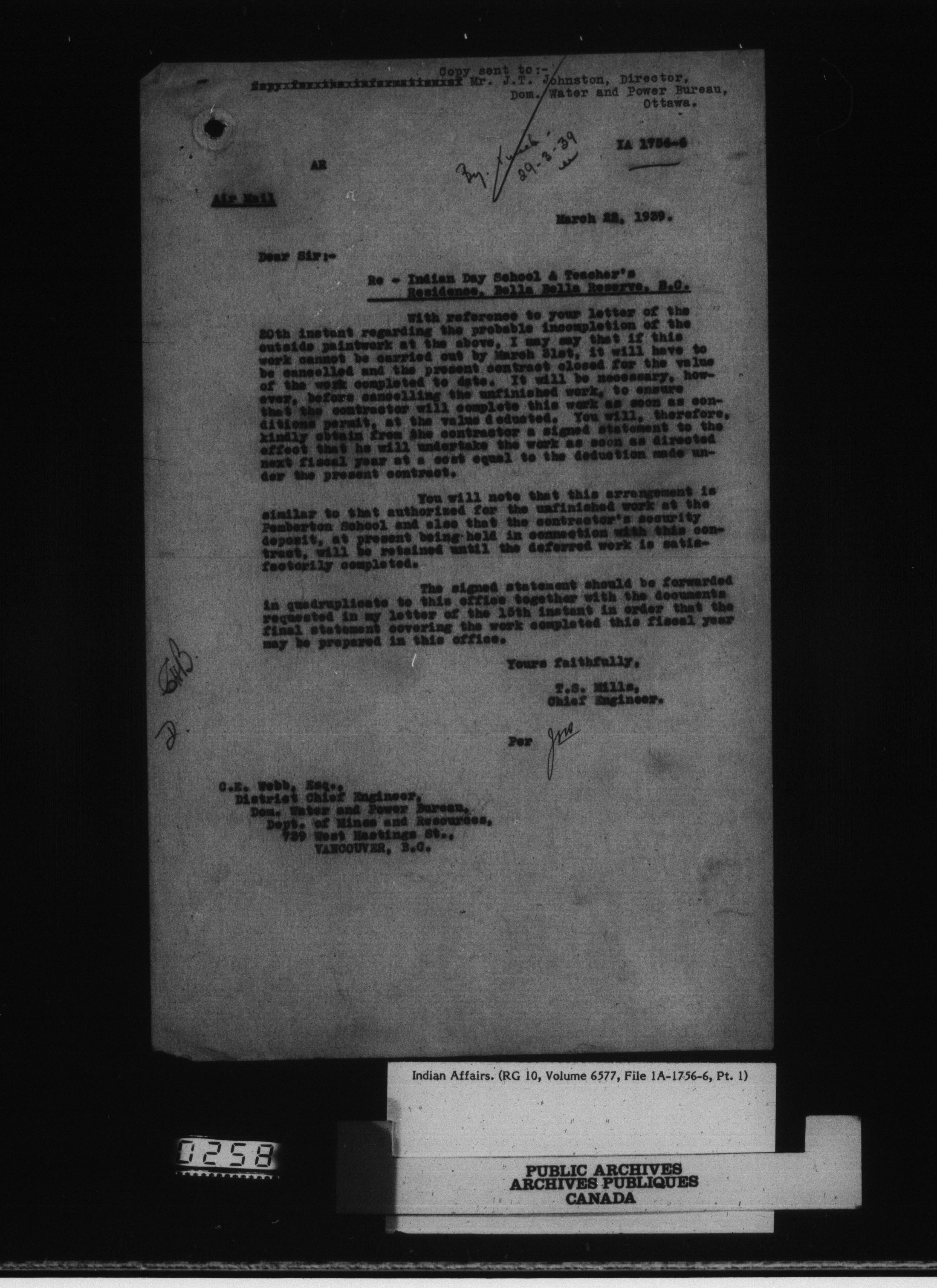 Department of Indian Affairs, Headquarters central registry system : engineering and construction files series - 15085