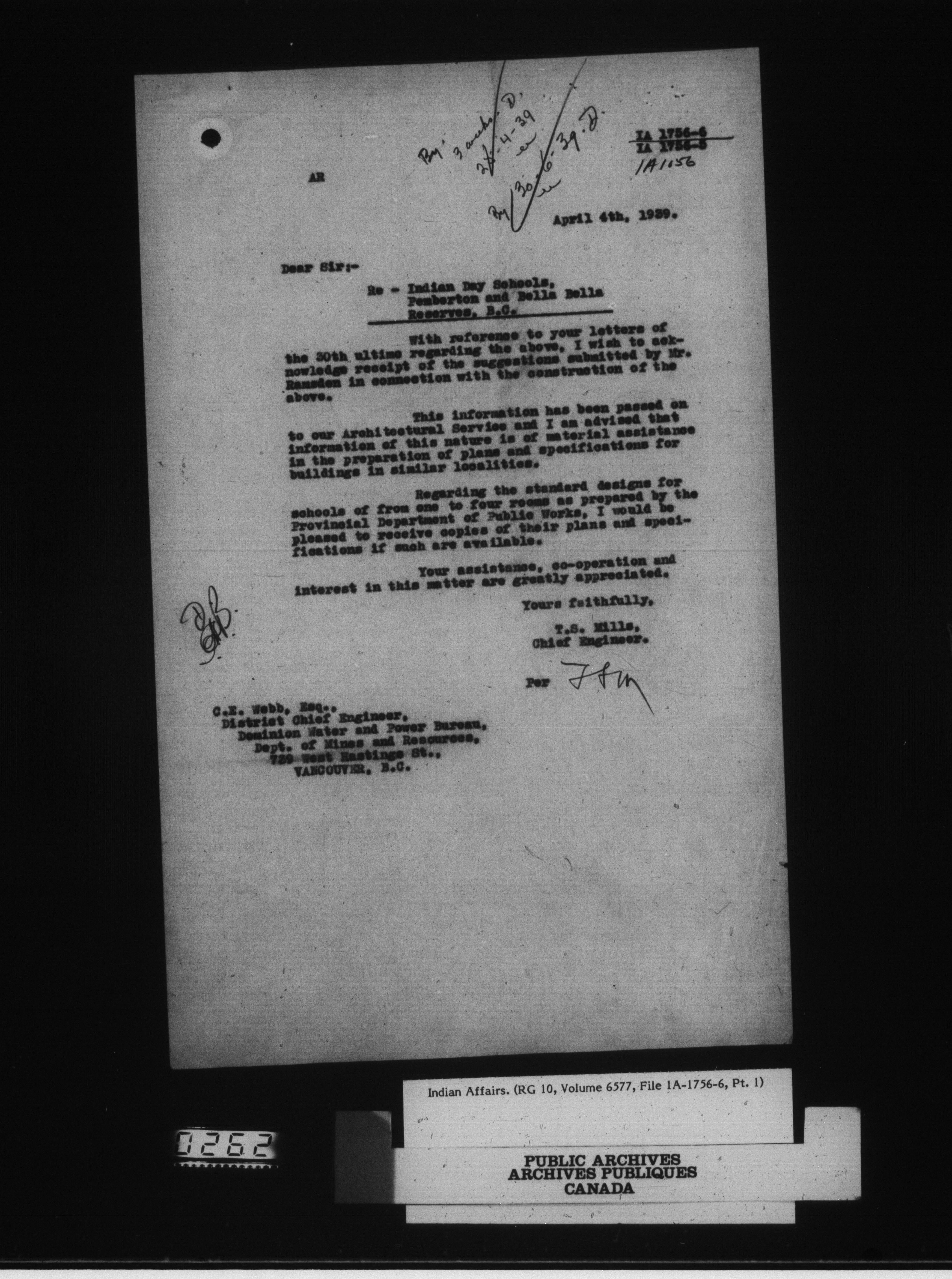 Department of Indian Affairs, Headquarters central registry system : engineering and construction files series - 15085