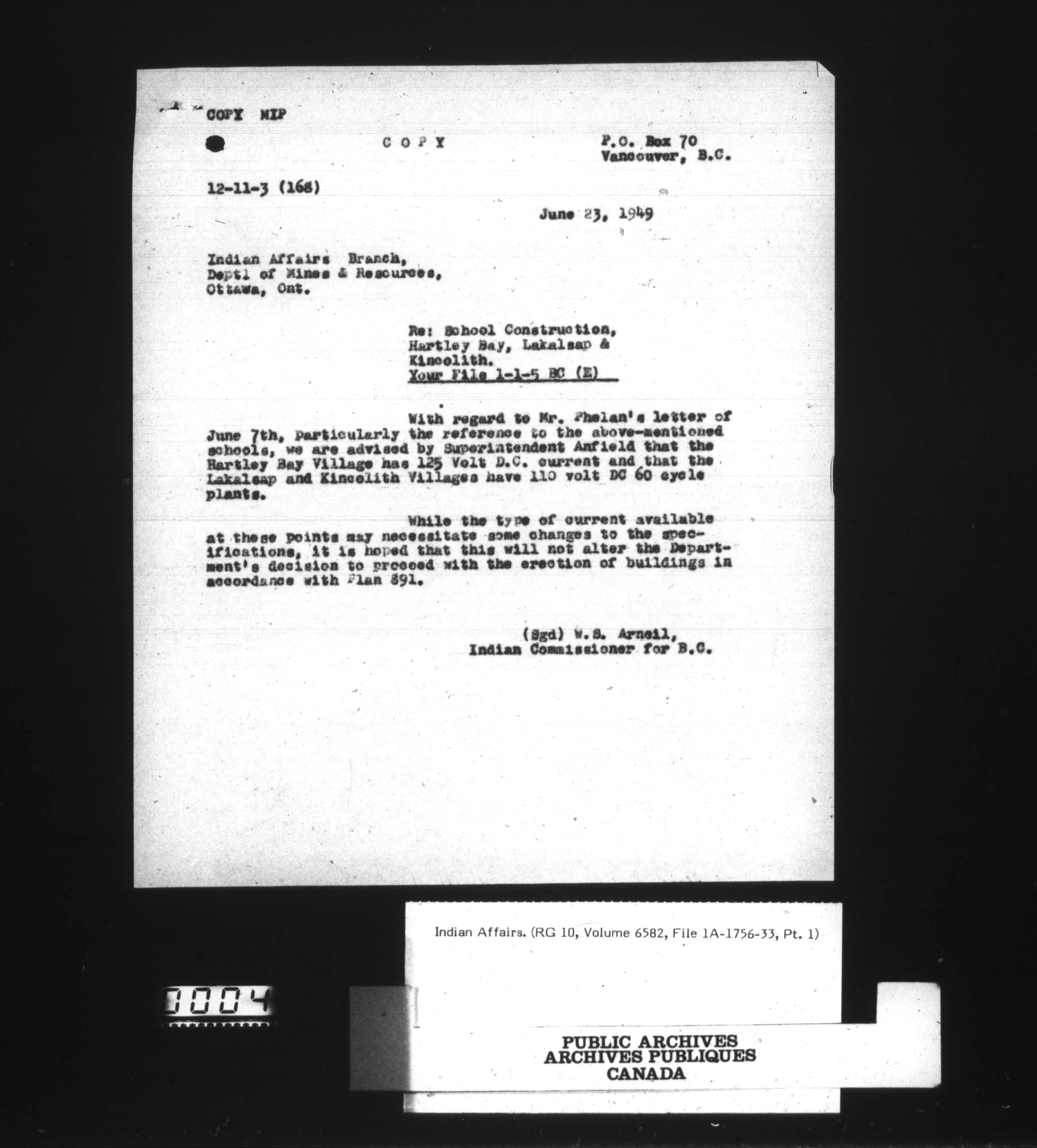 Department of Indian Affairs, Headquarters central registry system : engineering and construction files series - 15089