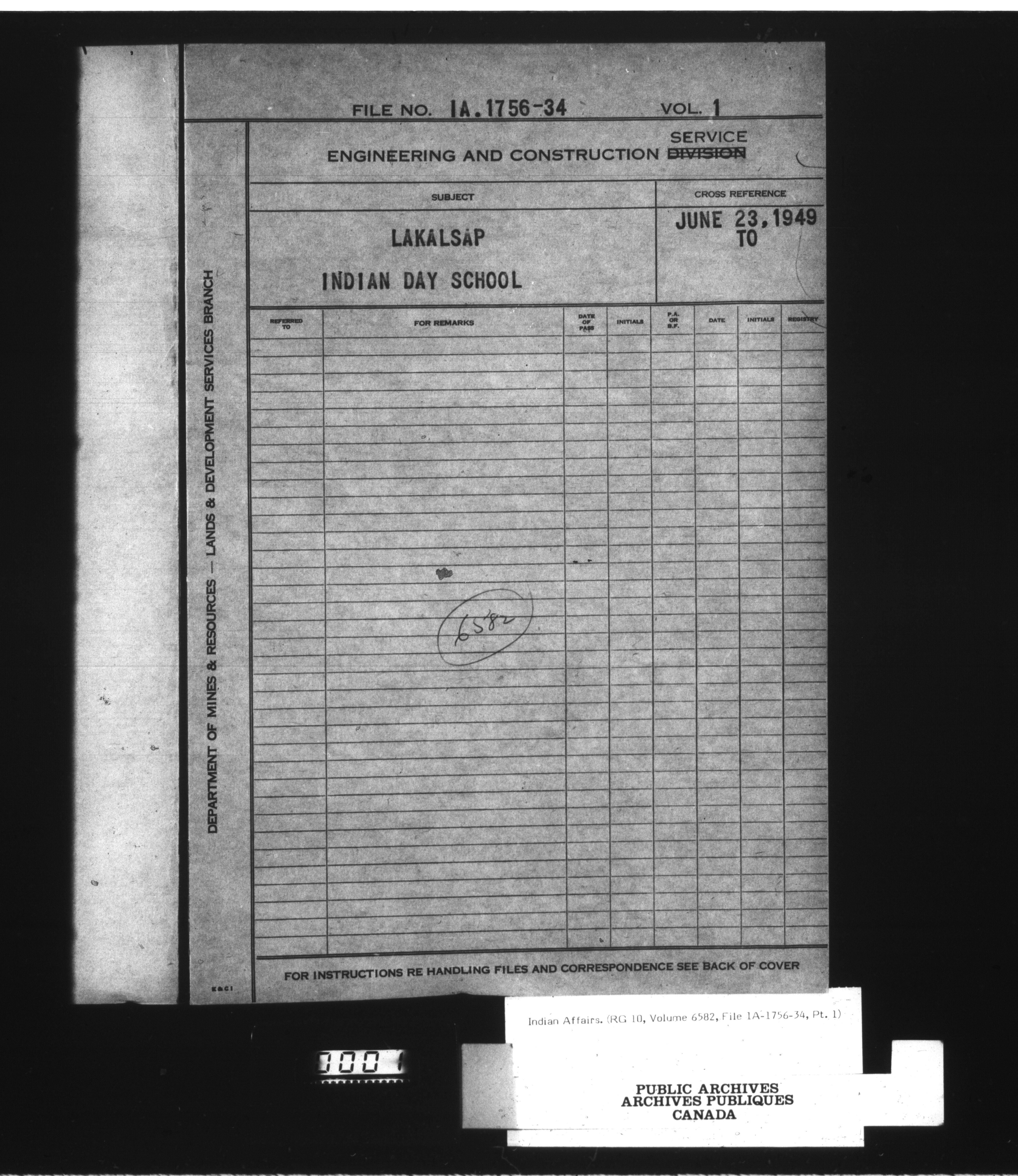 Department of Indian Affairs, Headquarters central registry system : engineering and construction files series - 15089