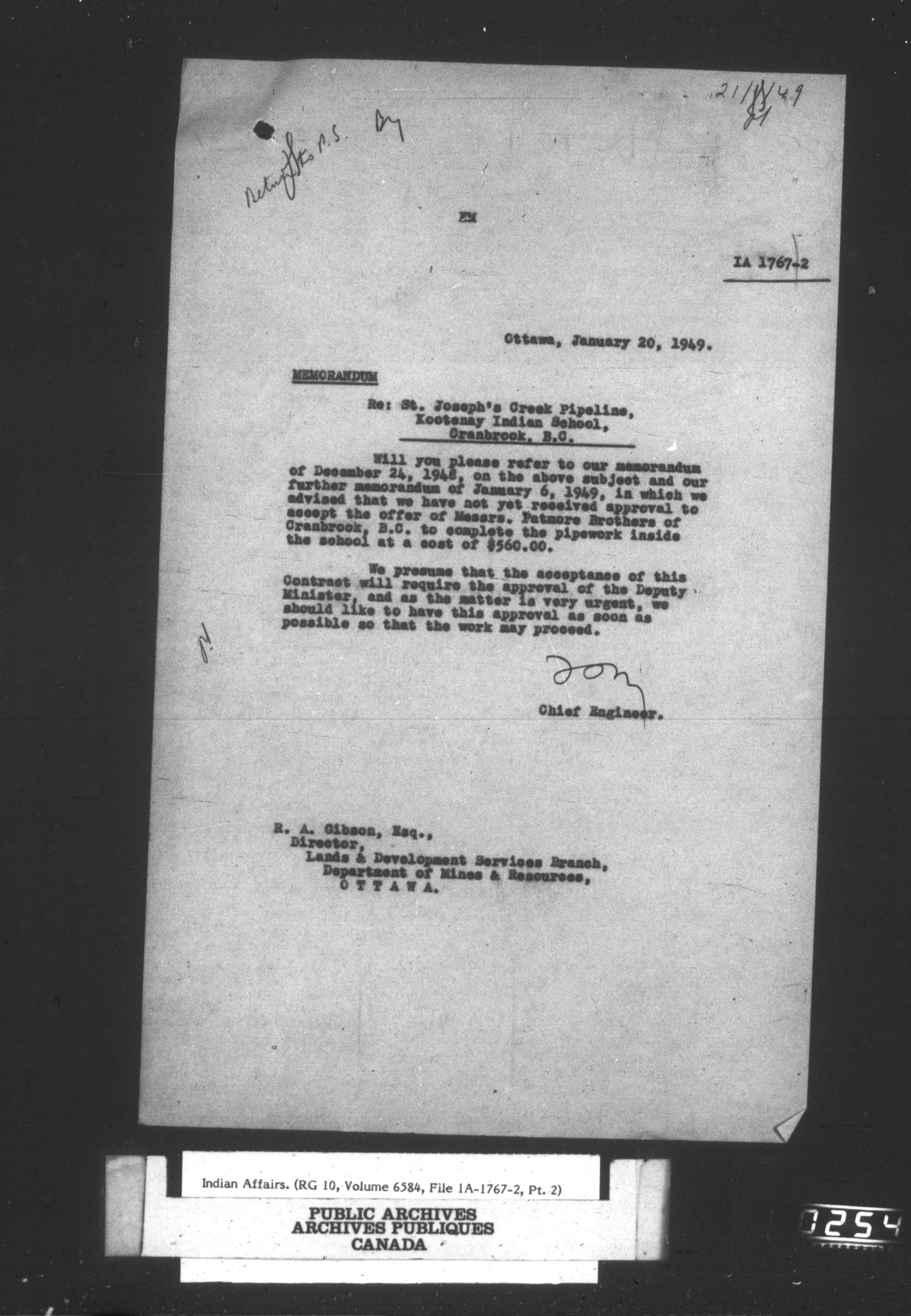 Department of Indian Affairs, Headquarters central registry system : engineering and construction files series : C-15090