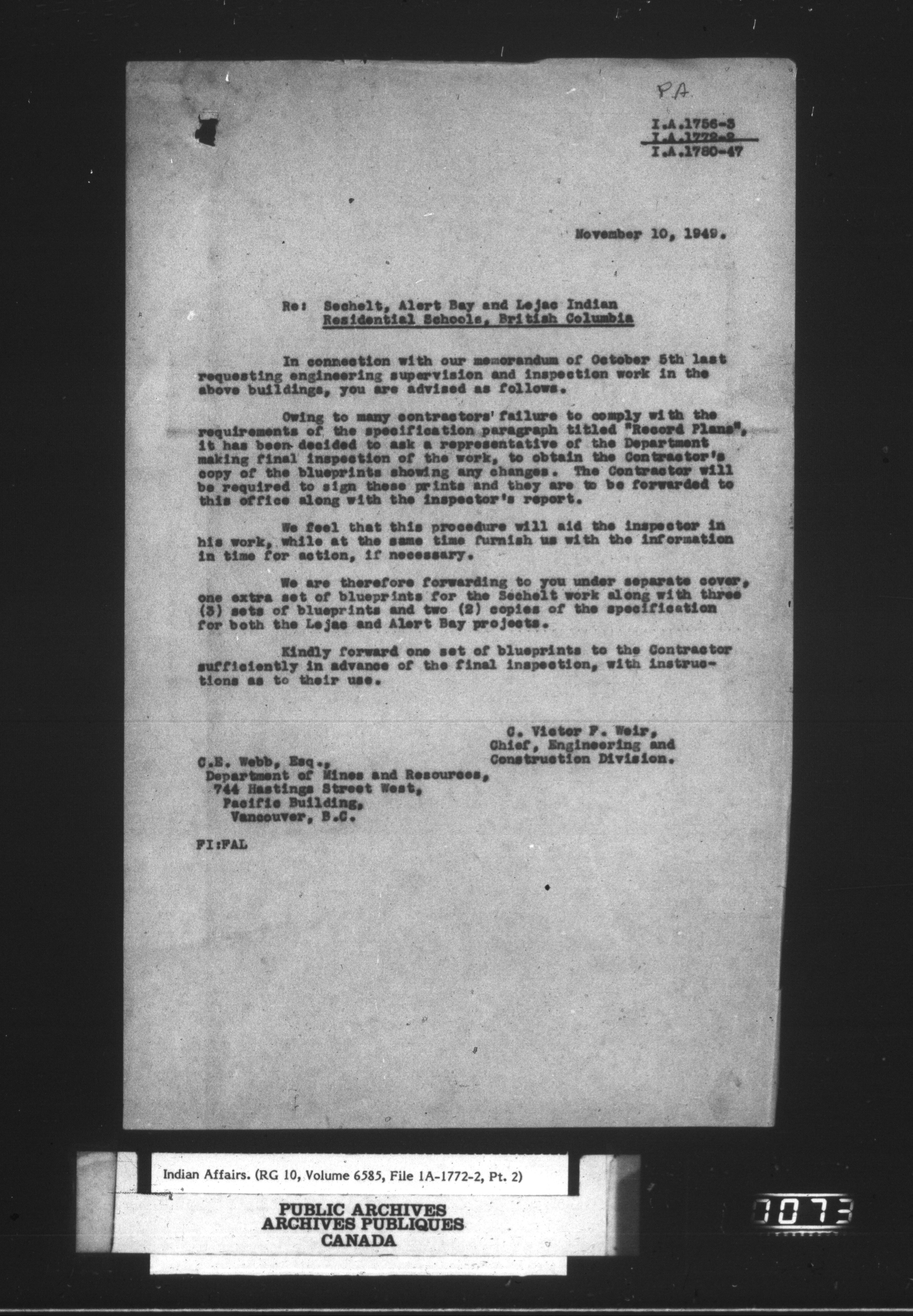 Department of Indian Affairs, Headquarters central registry system : engineering and construction files series - 15091