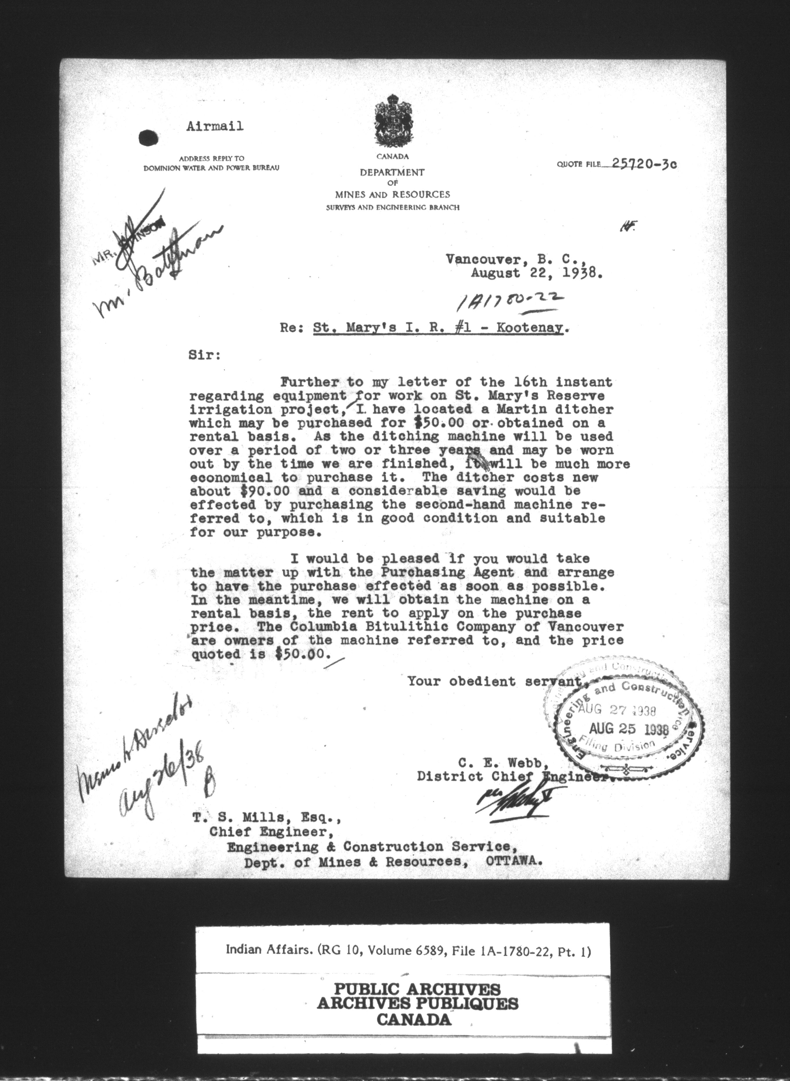 Department of Indian Affairs, Headquarters central registry system : engineering and construction files series : C-15094