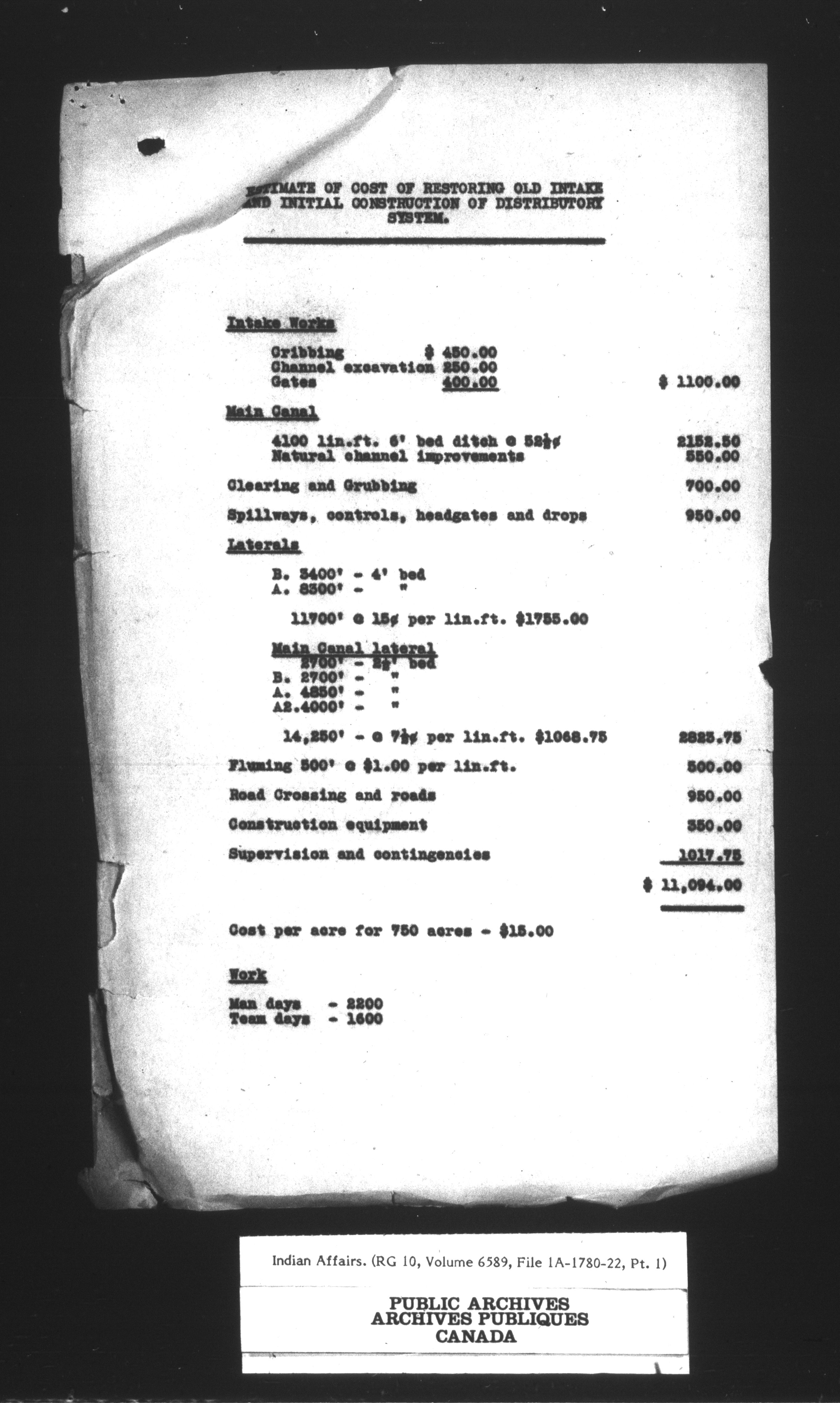 Department of Indian Affairs, Headquarters central registry system : engineering and construction files series - 15094