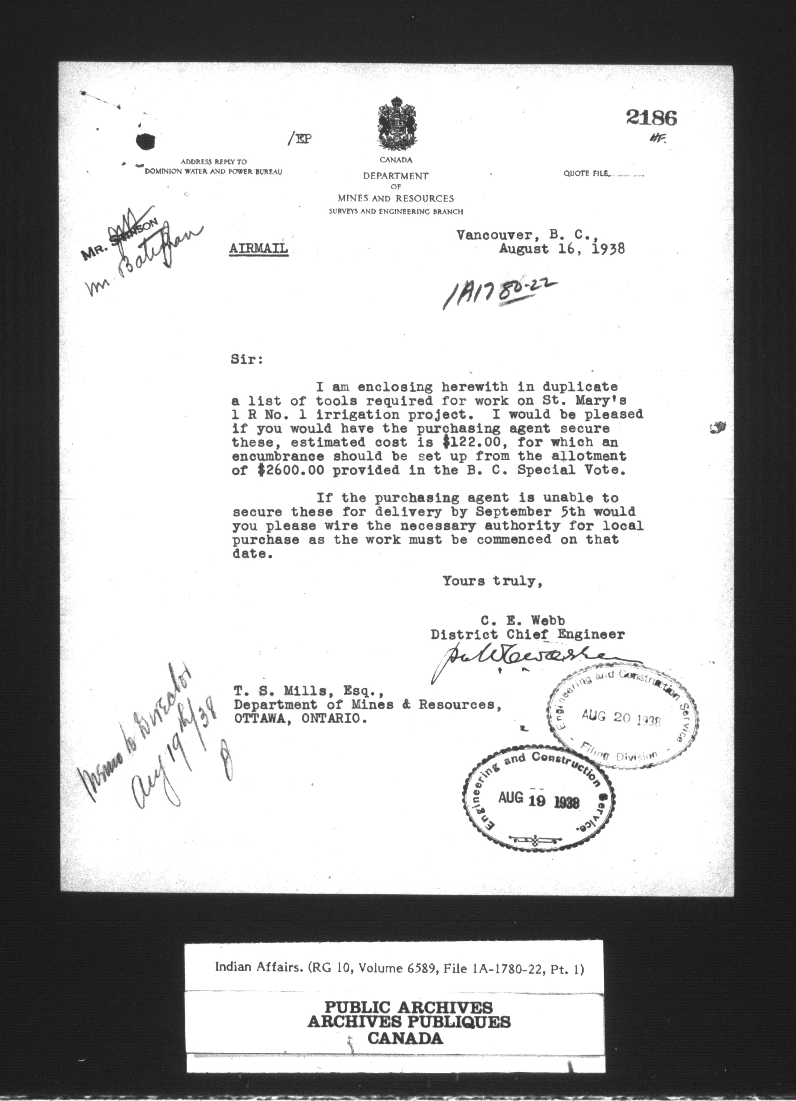 Department of Indian Affairs, Headquarters central registry system : engineering and construction files series : C-15094