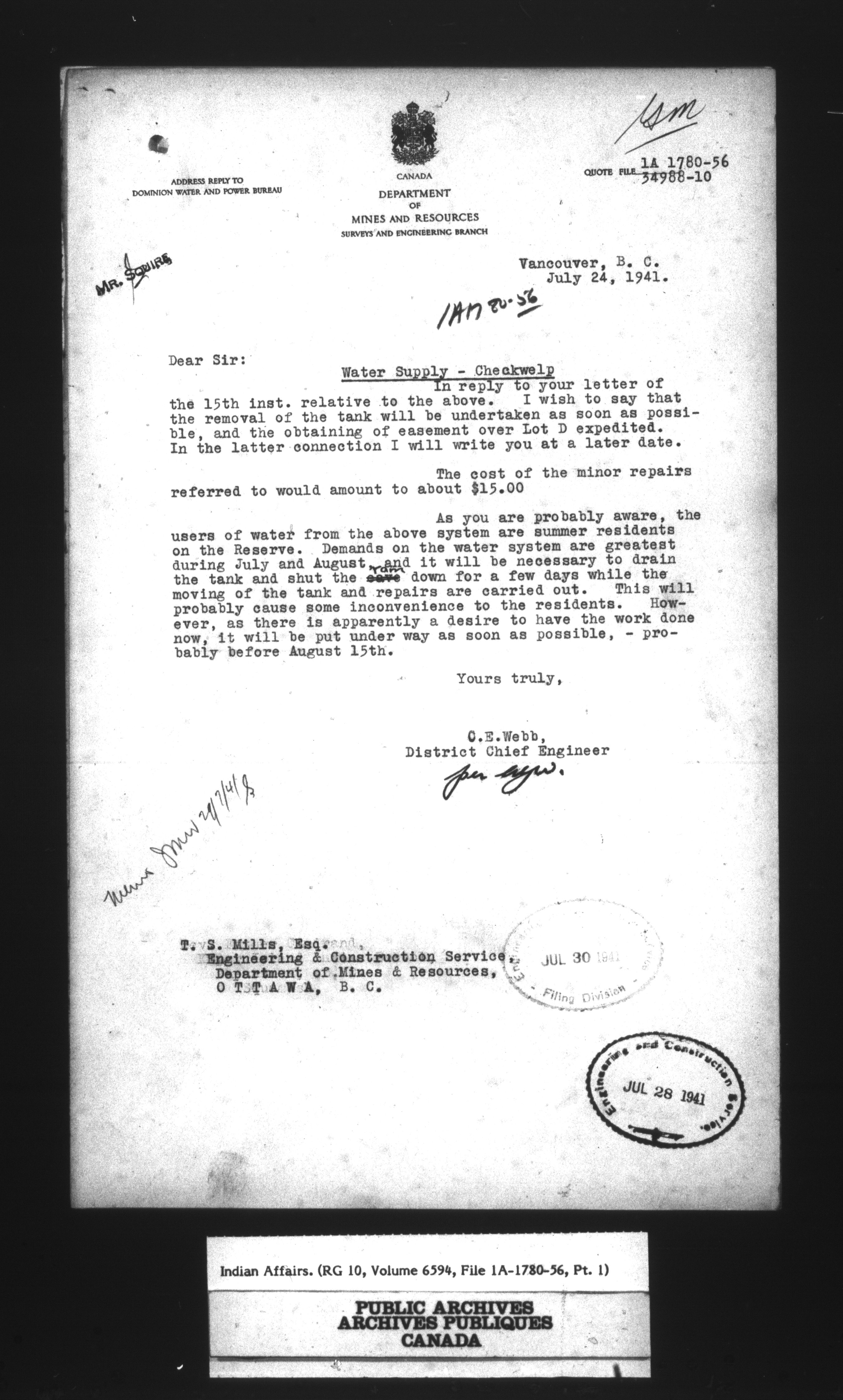 Department of Indian Affairs, Headquarters central registry system : engineering and construction files series - 15097