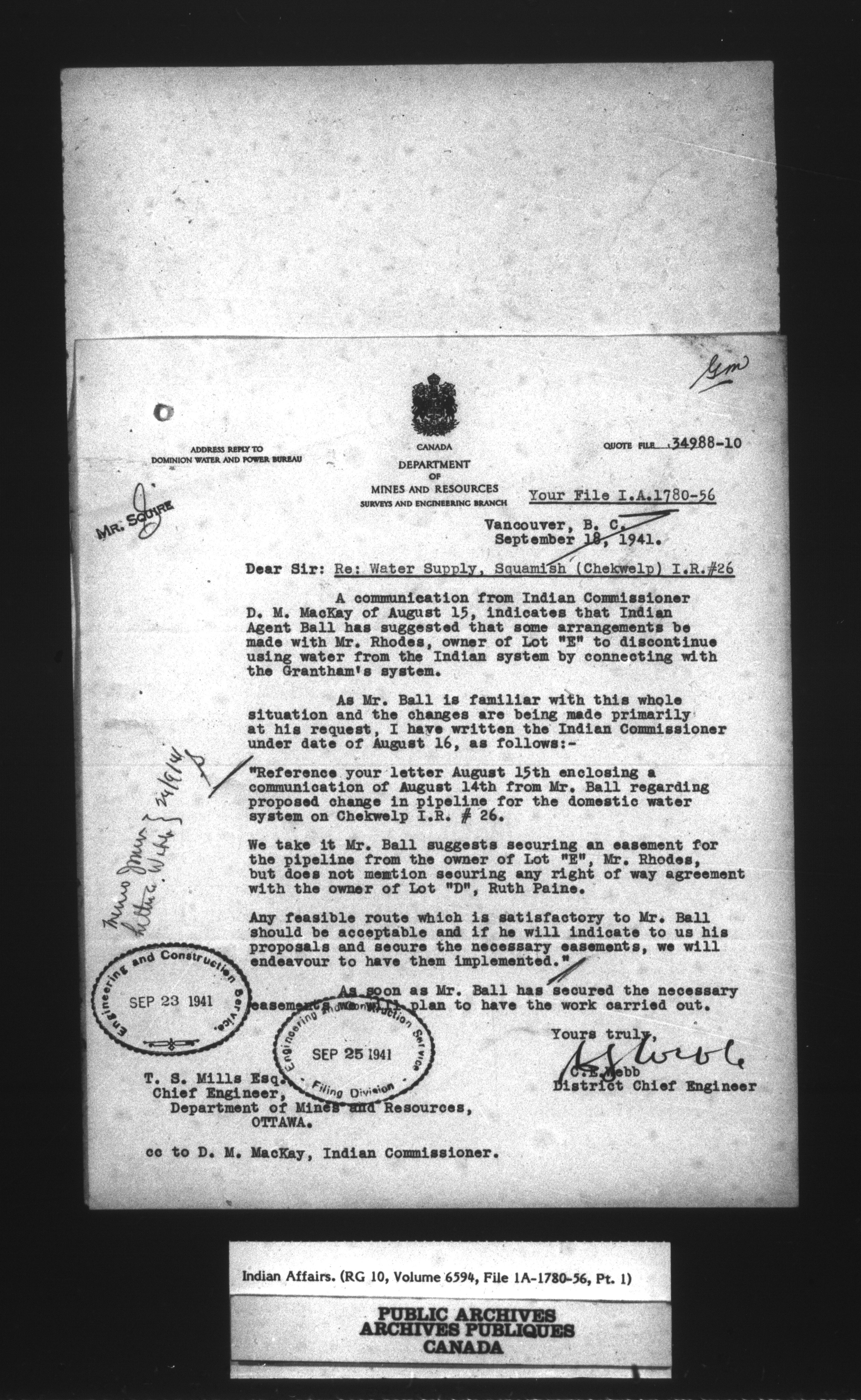 Department of Indian Affairs, Headquarters central registry system : engineering and construction files series - 15097