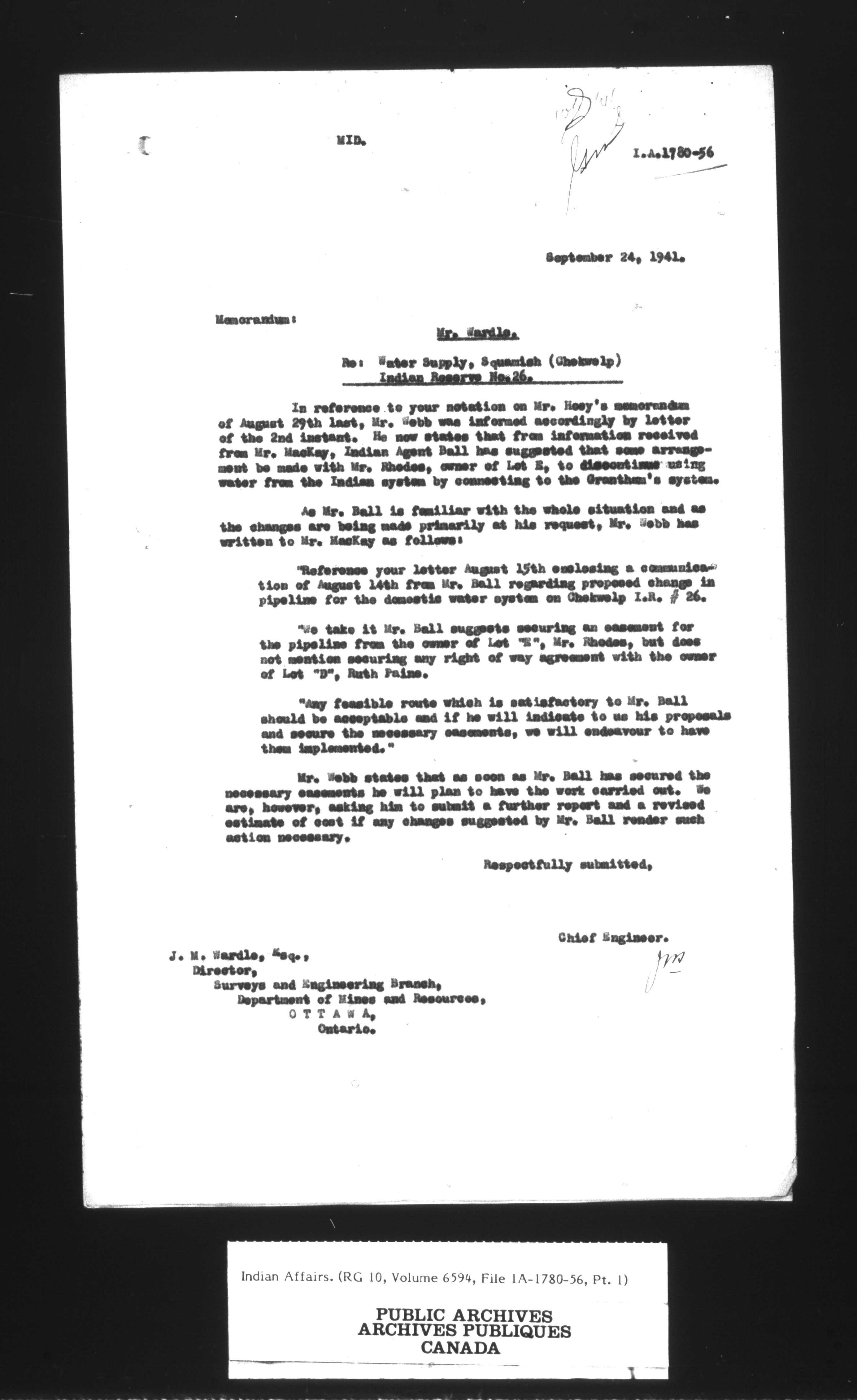 Department of Indian Affairs, Headquarters central registry system : engineering and construction files series - 15097