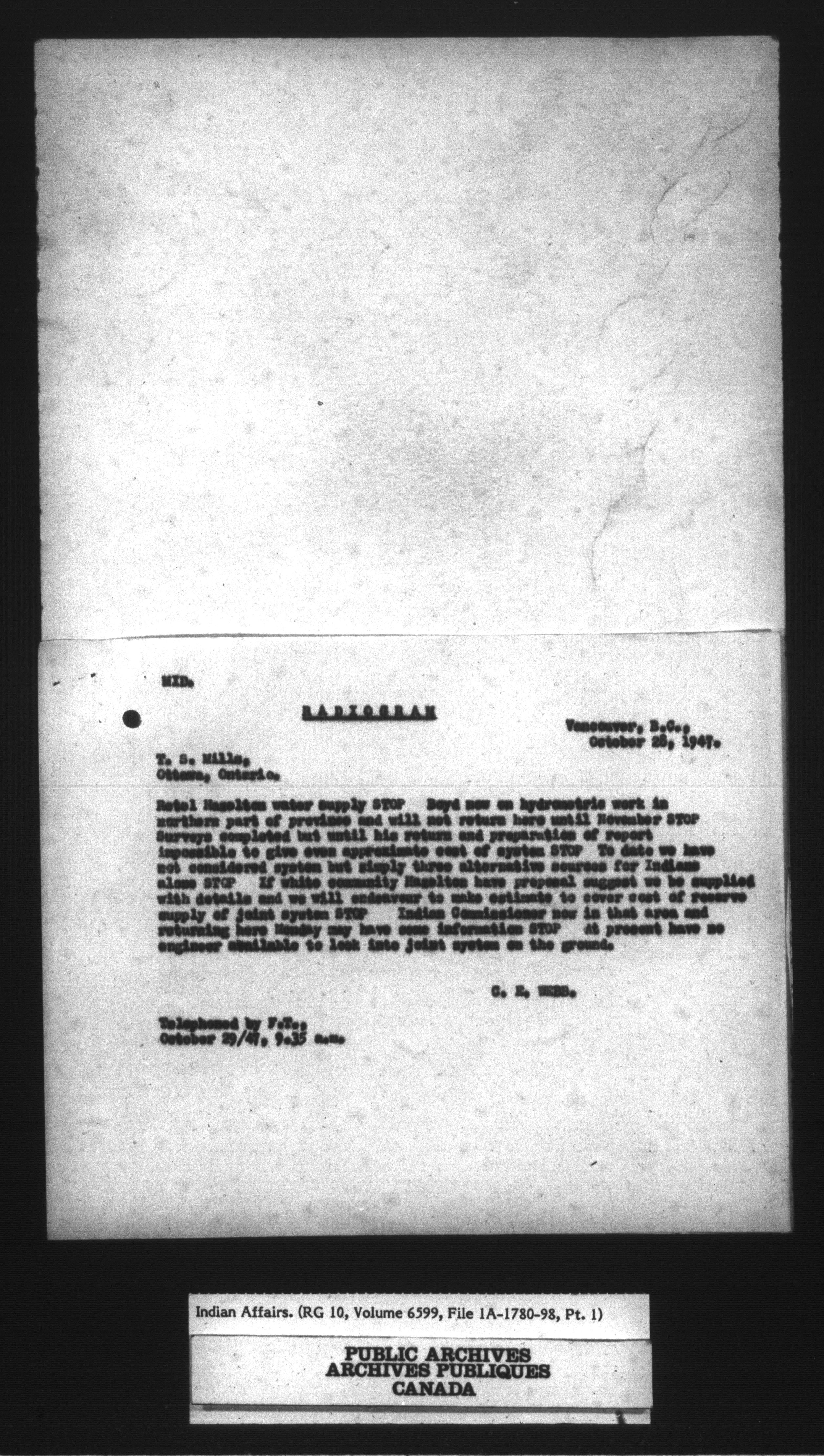 Department of Indian Affairs, Headquarters central registry system : engineering and construction files series - 15099