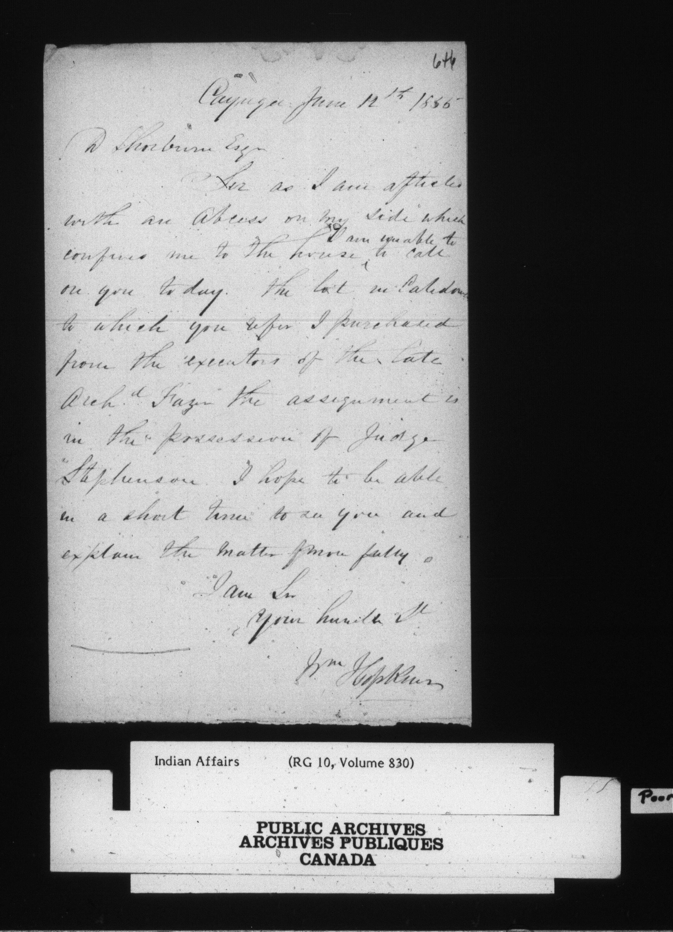 Department of Indian Affairs, Six Nations Superintendency : correspondence - 15109