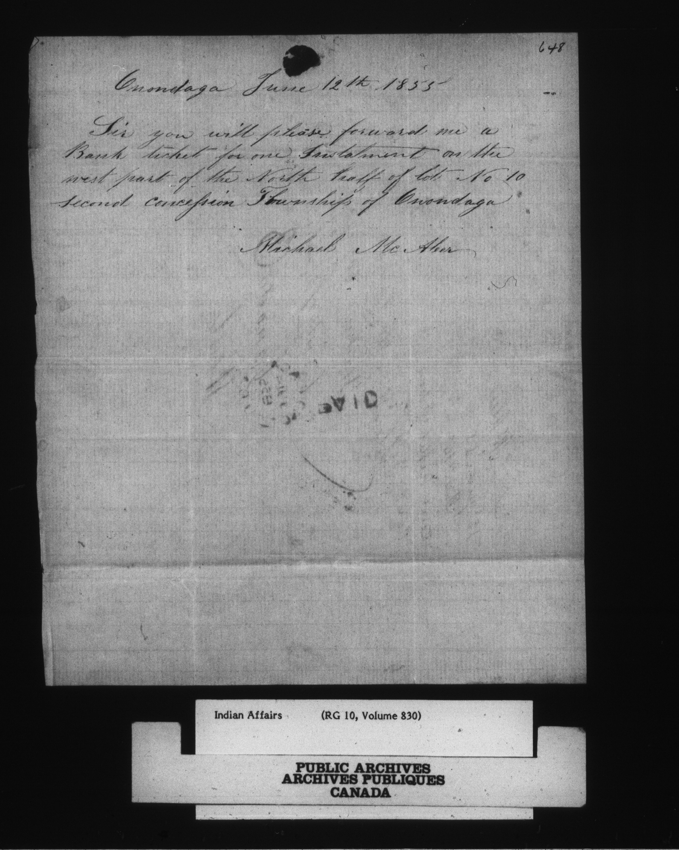 Department of Indian Affairs, Six Nations Superintendency : correspondence - 15109