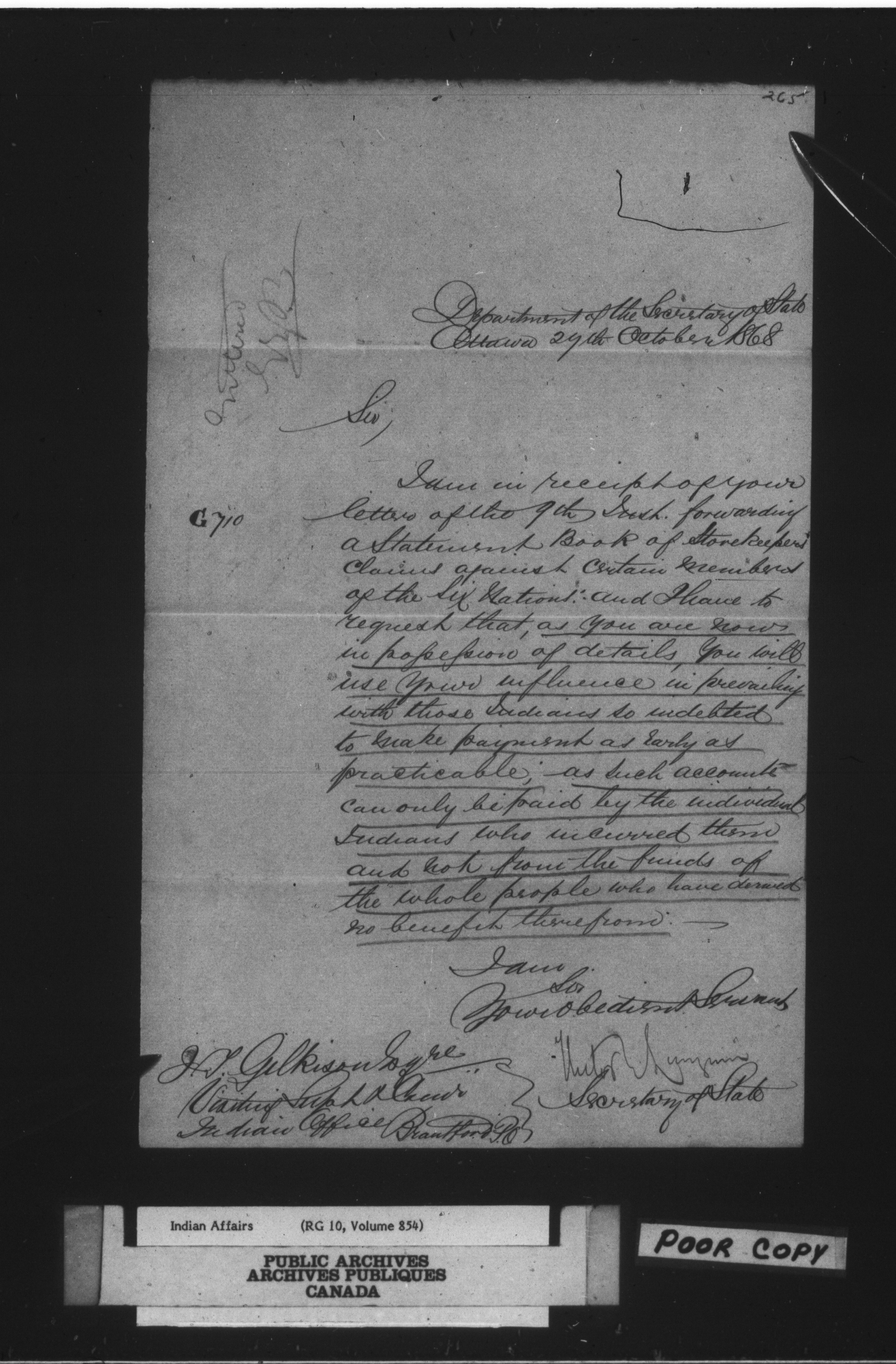 Department of Indian Affairs, Six Nations Superintendency : correspondence : C-15116