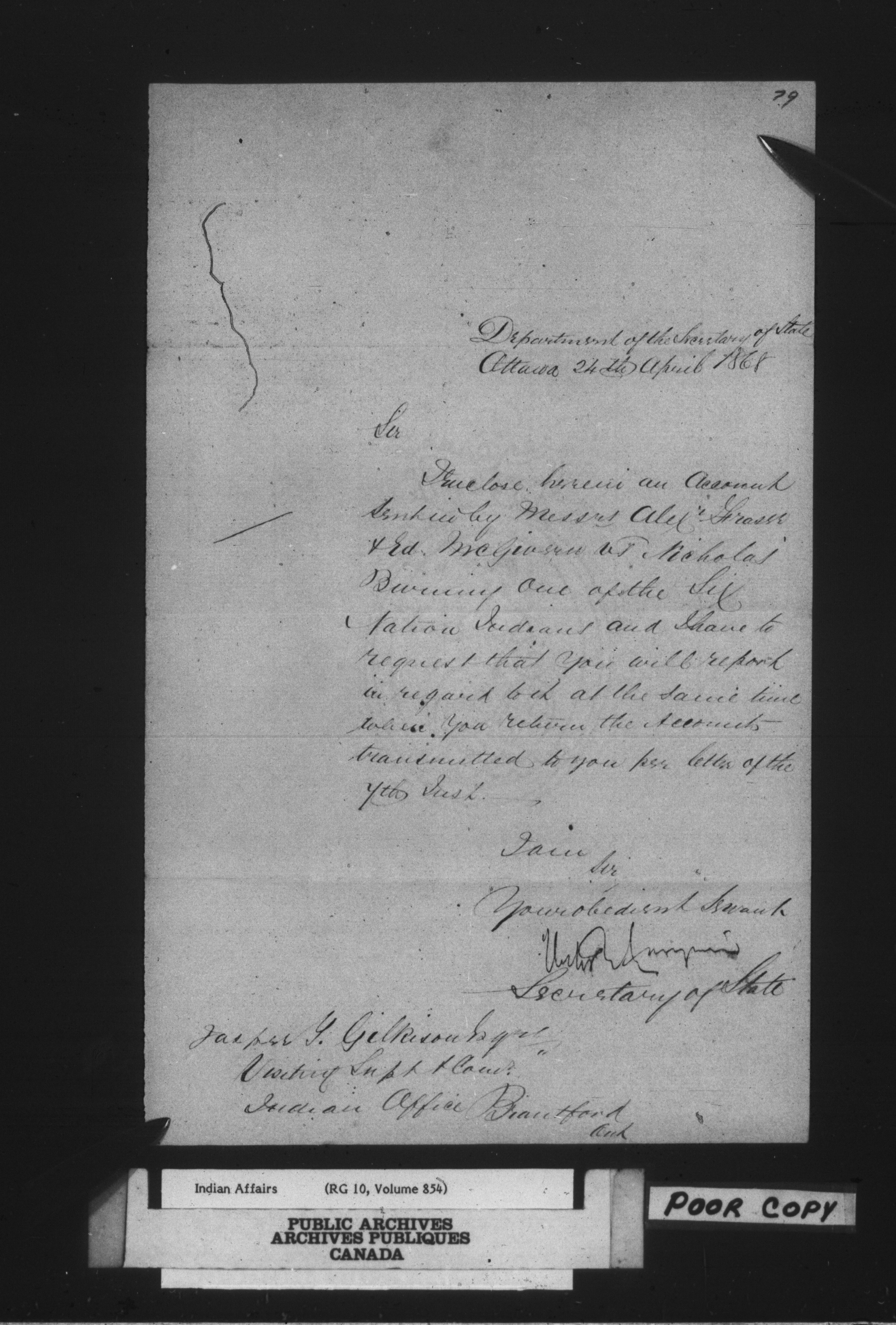 Department of Indian Affairs, Six Nations Superintendency : correspondence : C-15116