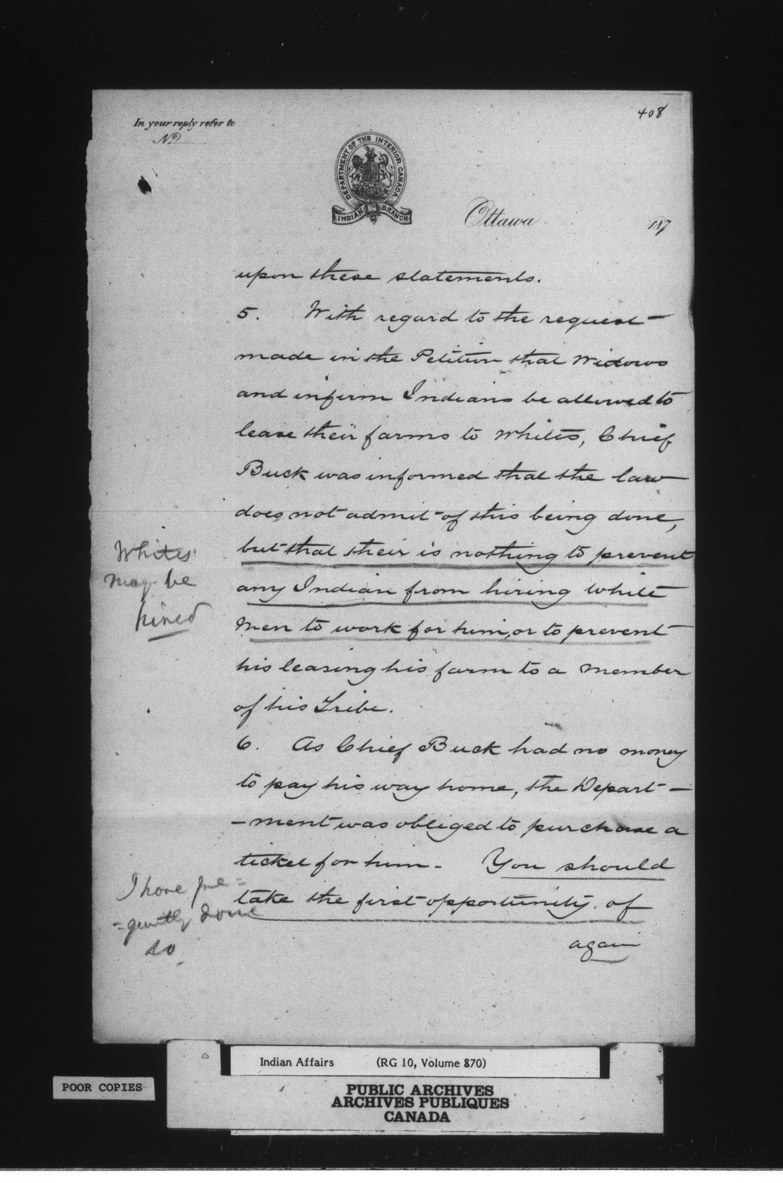 Department of Indian Affairs, Six Nations Superintendency : correspondence : C-15119