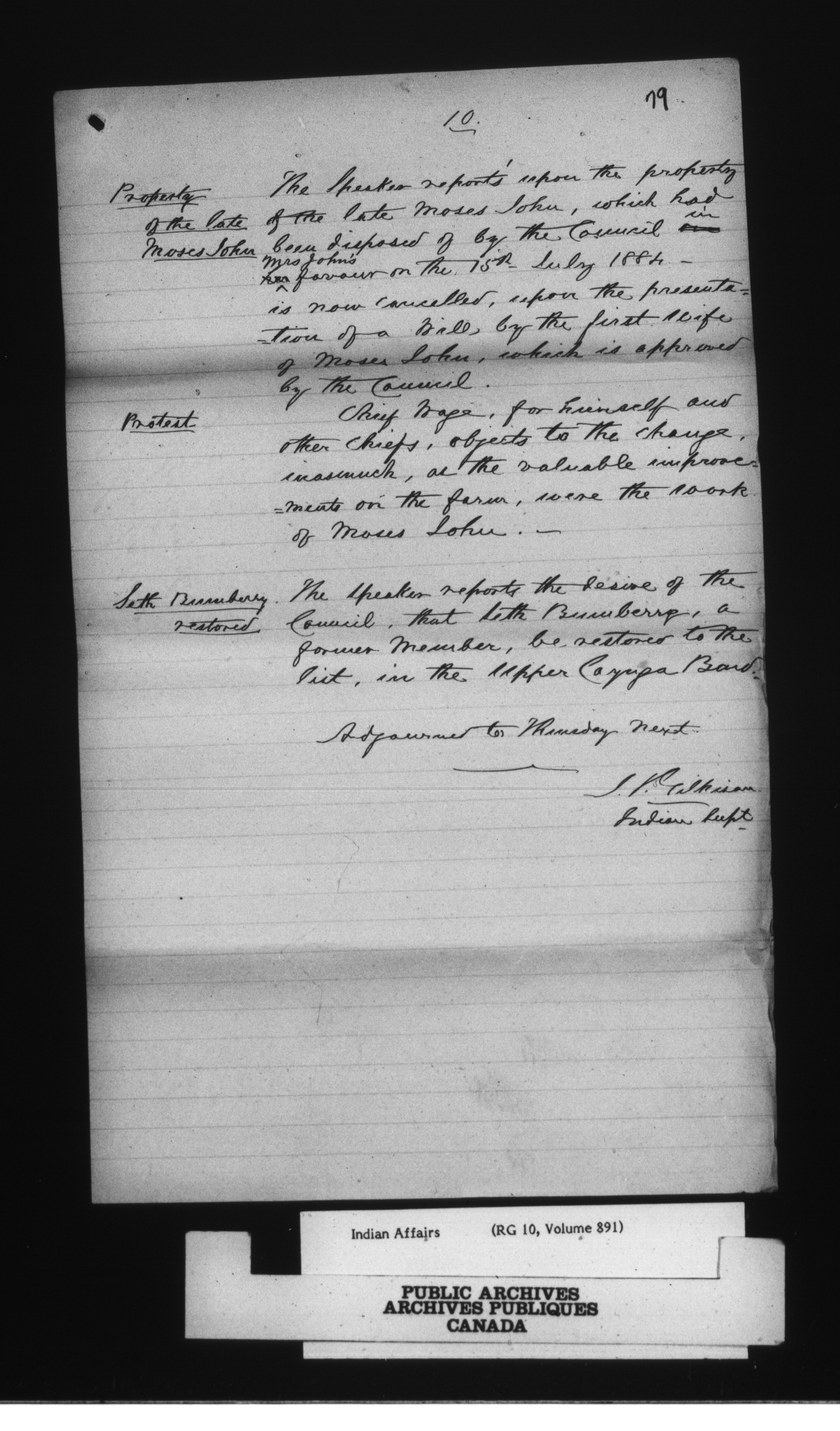 Department of Indian Affairs, Six Nations Superintendency : correspondence : C-15123