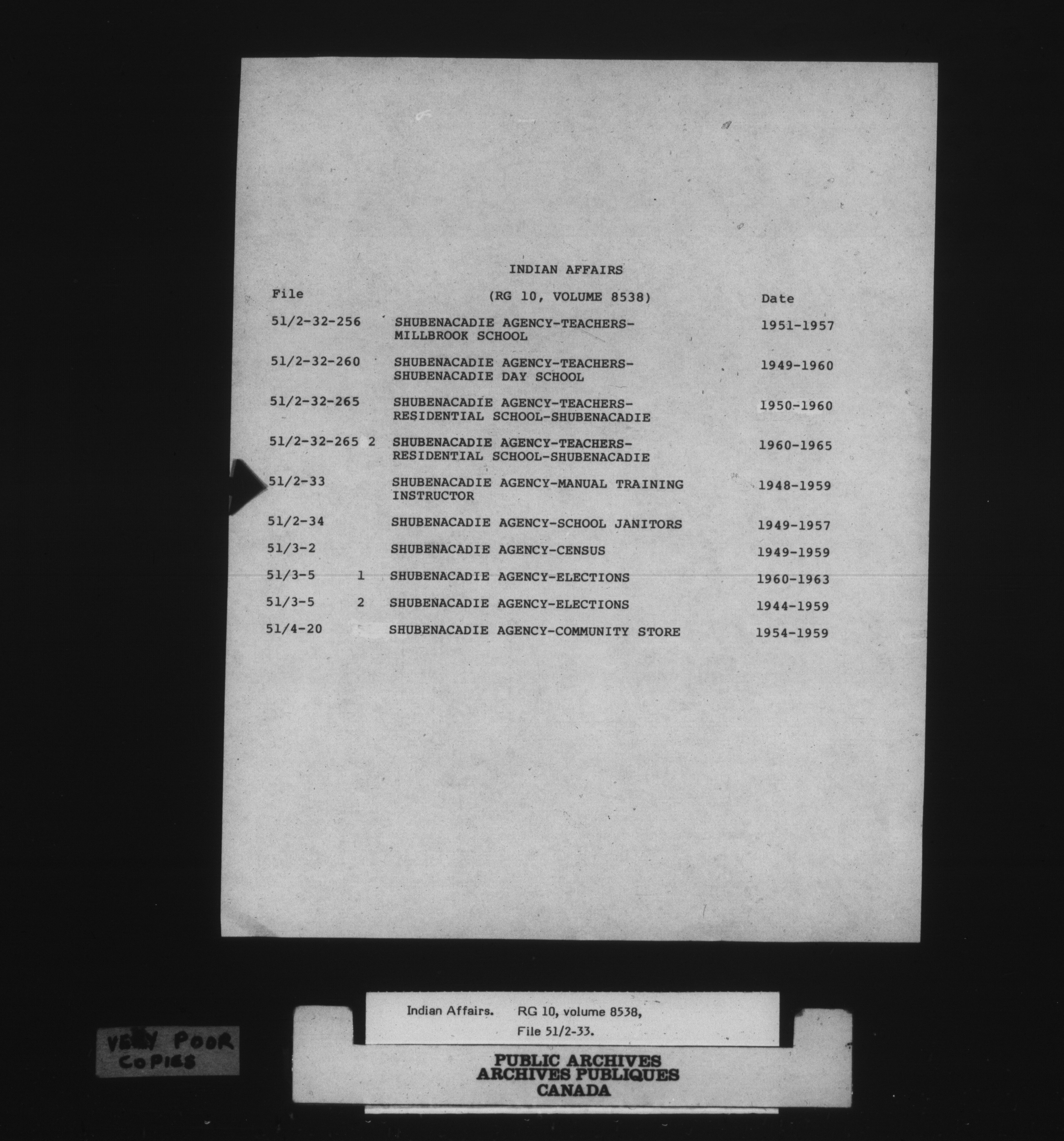 Department of Indian Affairs: Shubenacadie Agency - 15130