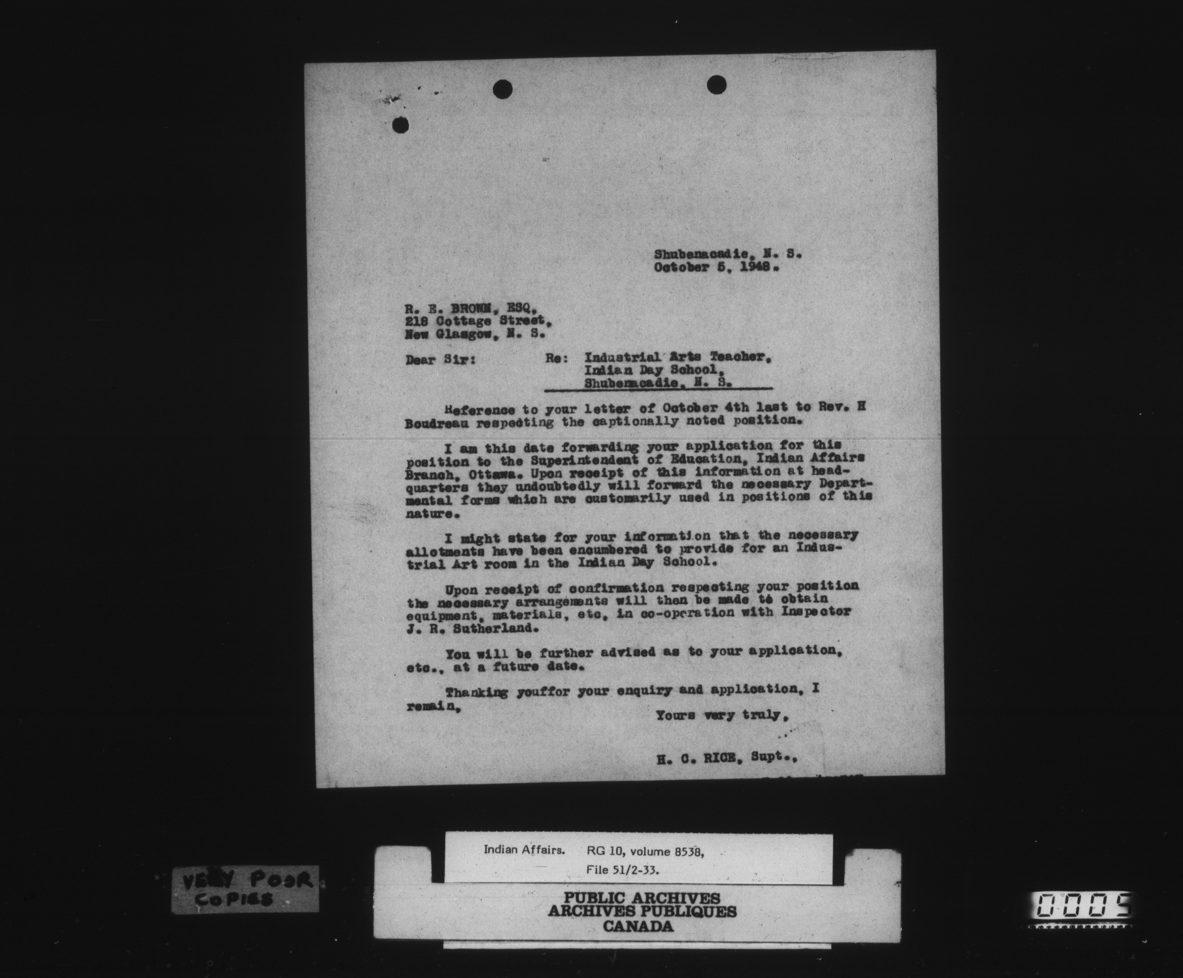 Department of Indian Affairs : Shubenacadie Agency : C-15130