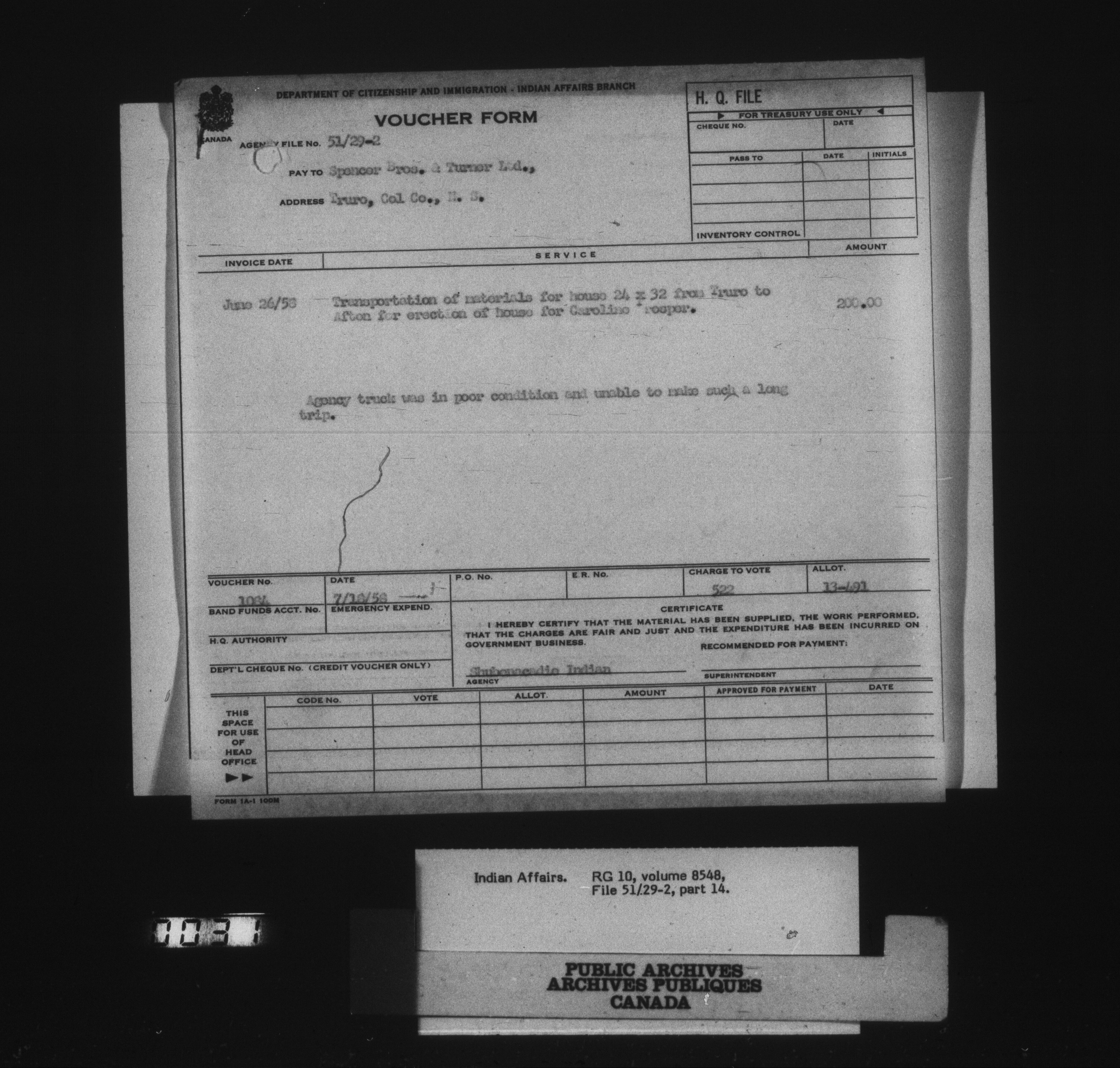 Department of Indian Affairs: Shubenacadie Agency - 15136