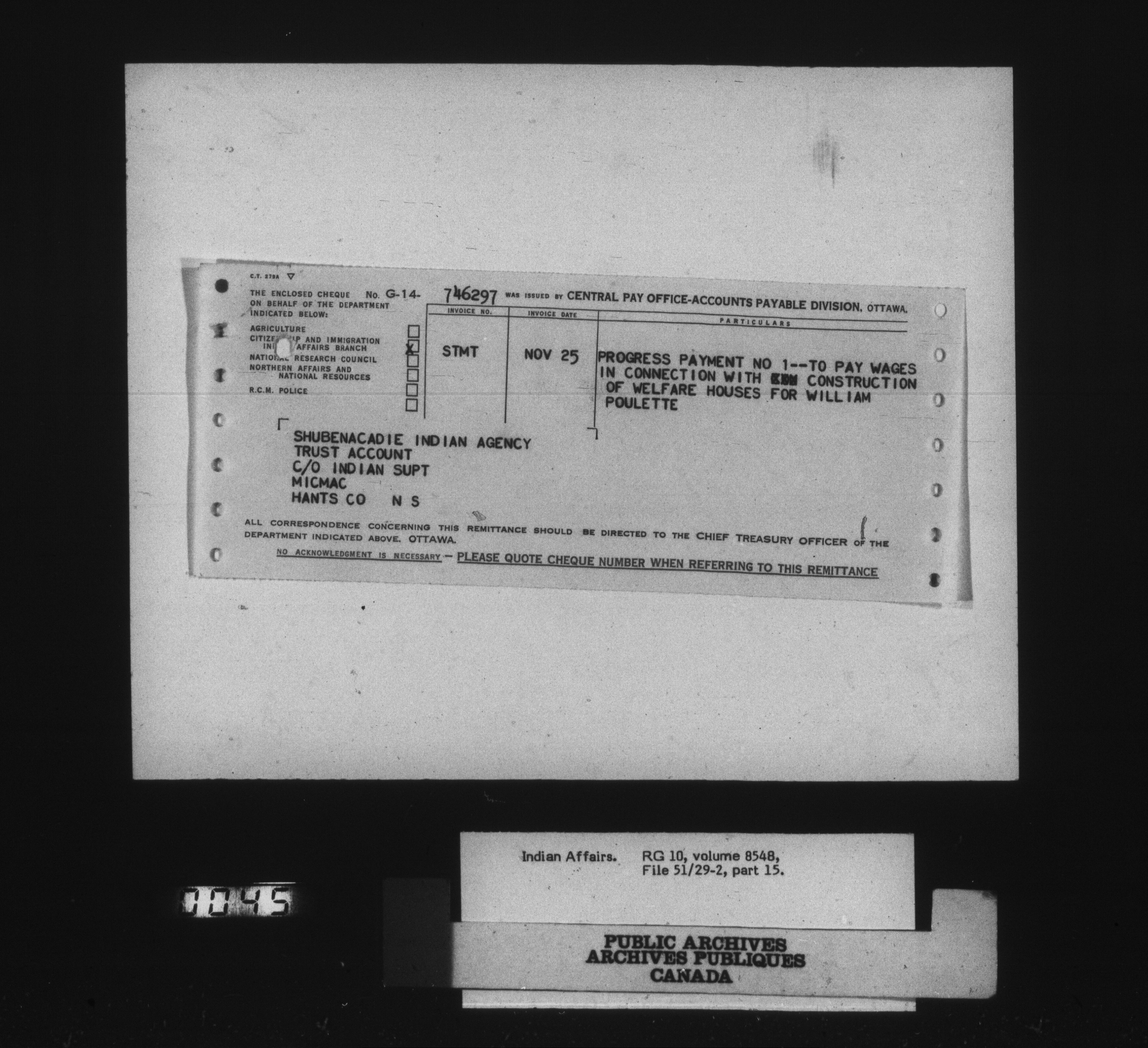 Department of Indian Affairs: Shubenacadie Agency - 15136