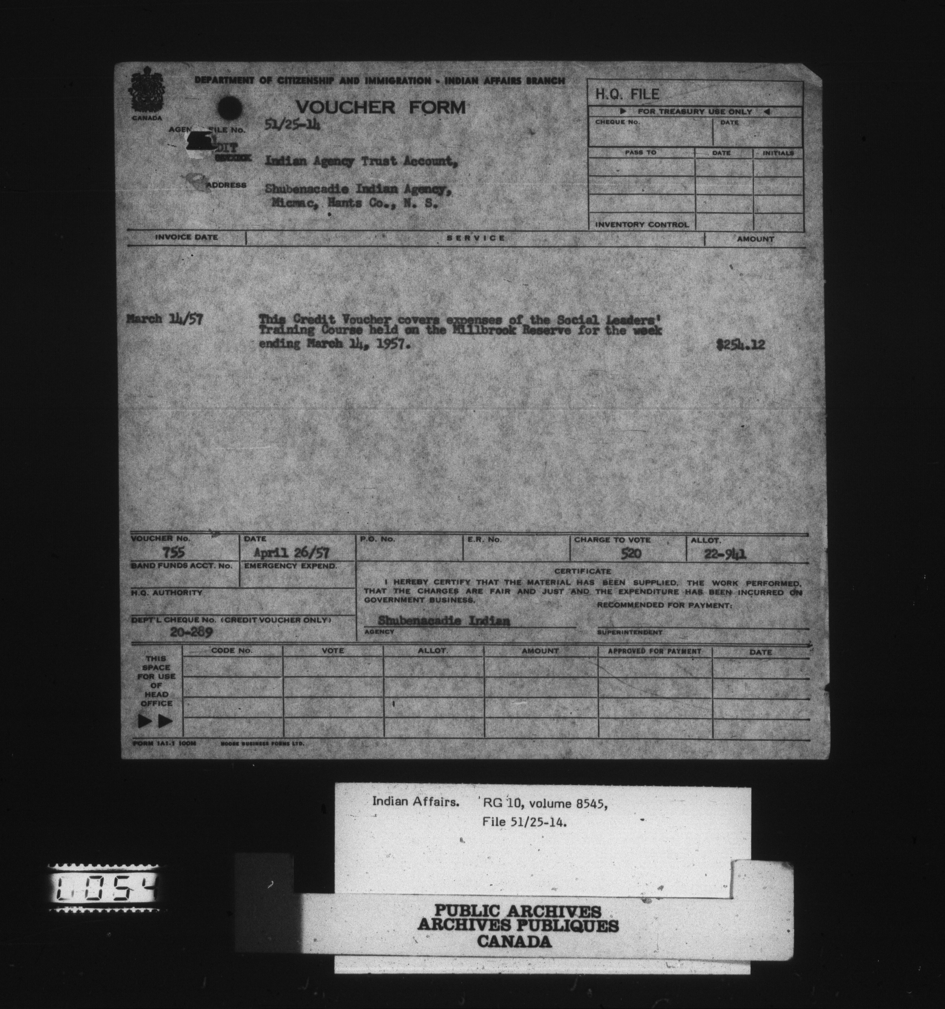 Department of Indian Affairs: Shubenacadie Agency - 15136