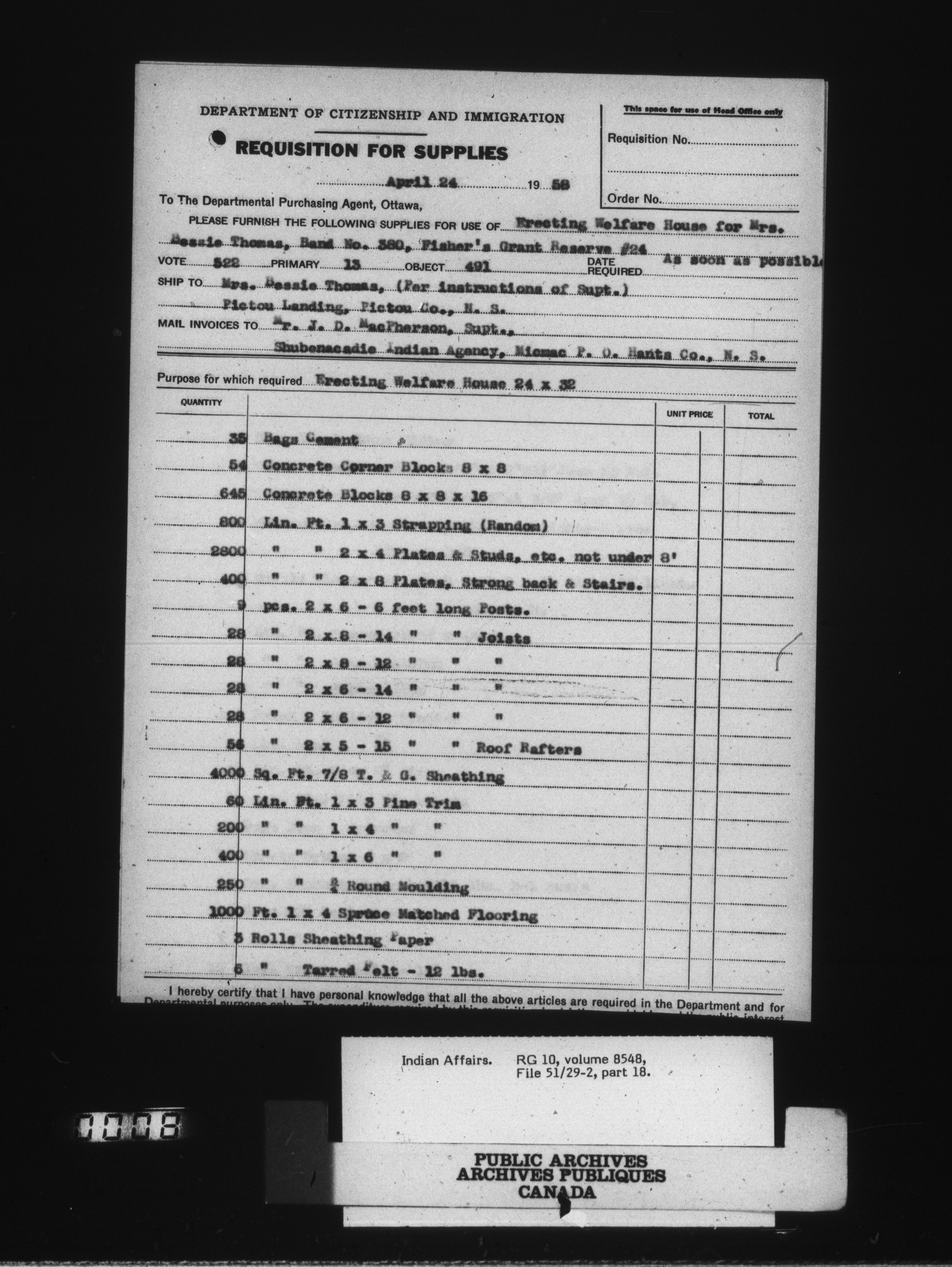 Department of Indian Affairs : Shubenacadie Agency : C-15137