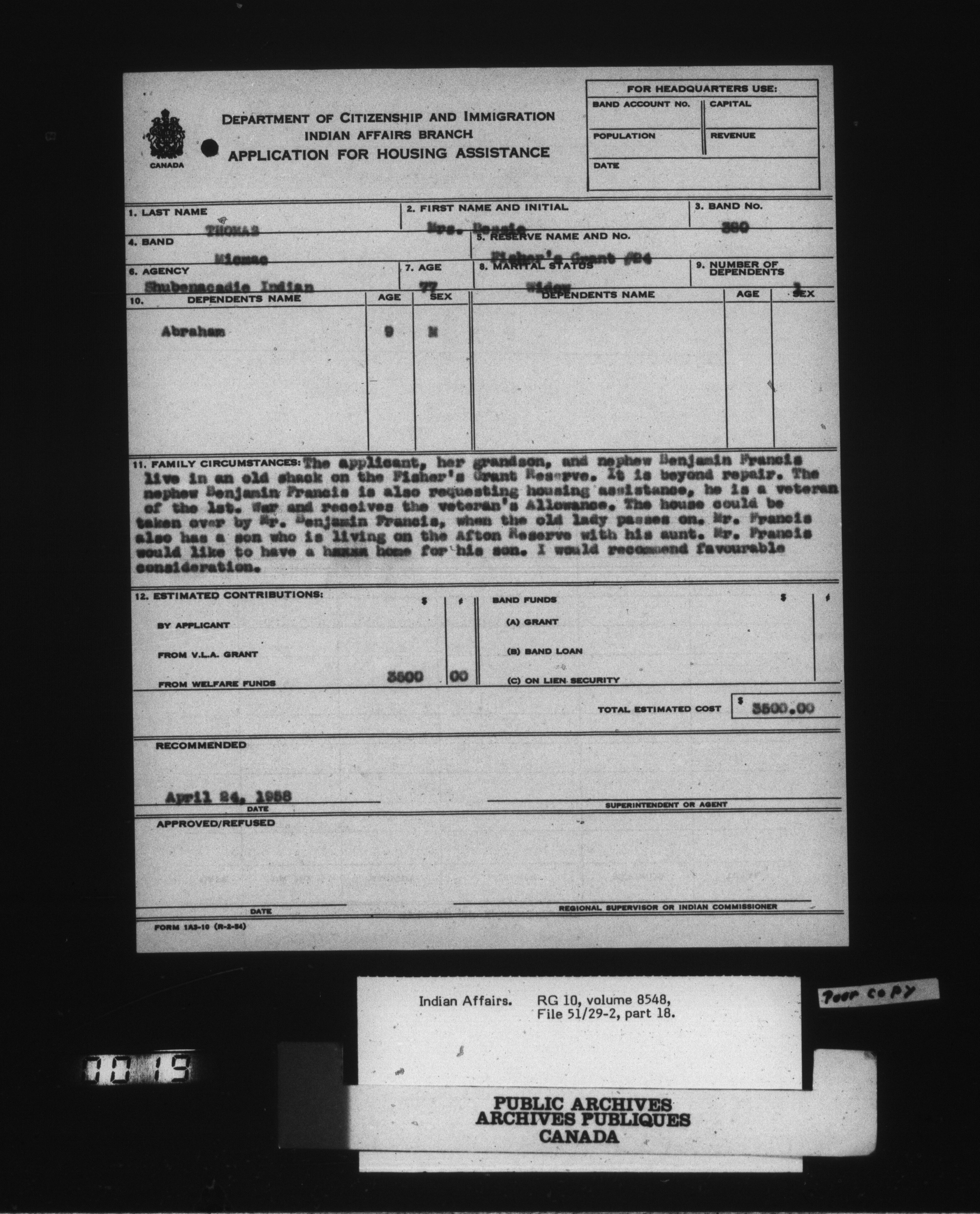 Department of Indian Affairs : Shubenacadie Agency : C-15137