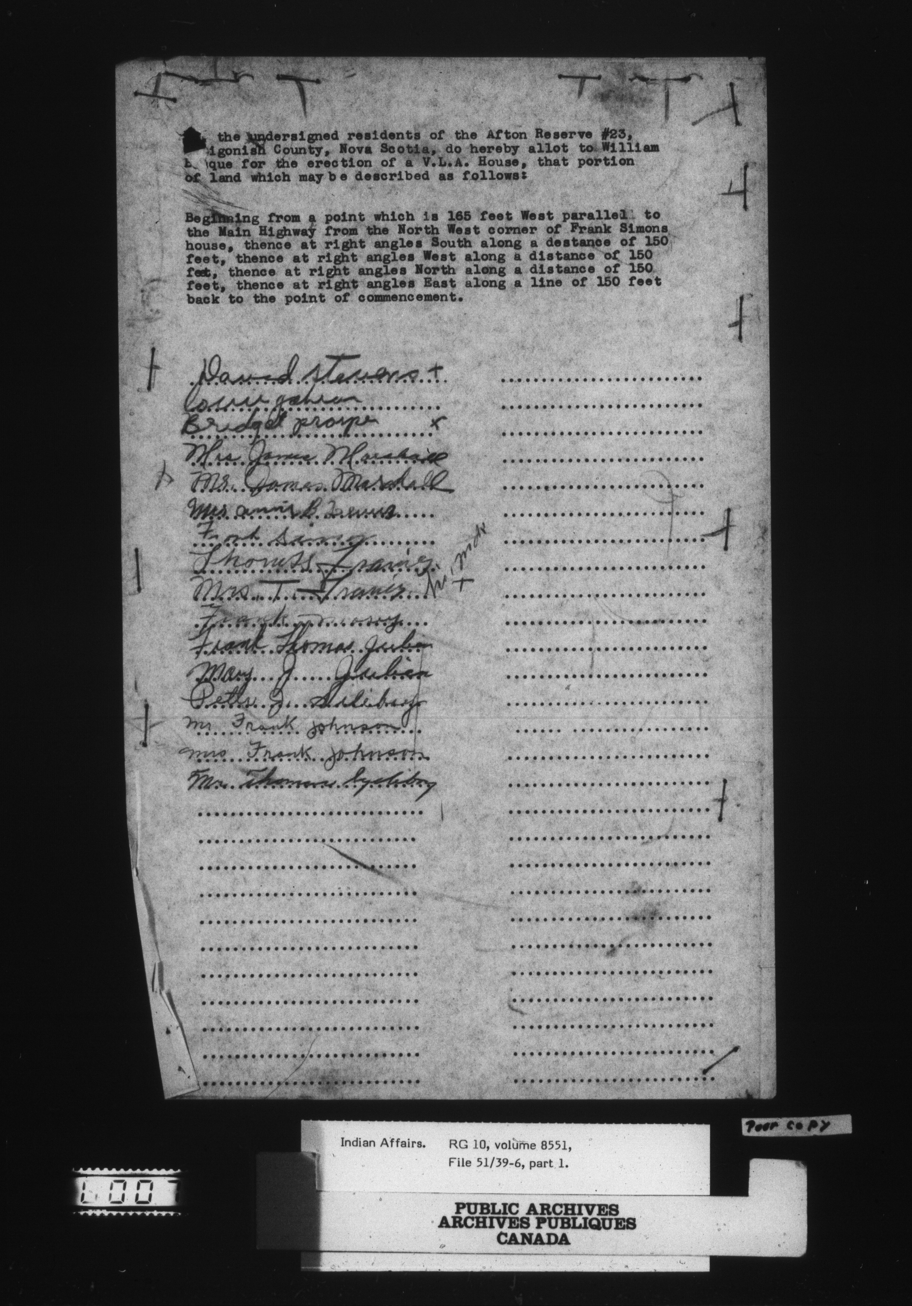 Department of Indian Affairs : Shubenacadie Agency : C-15139