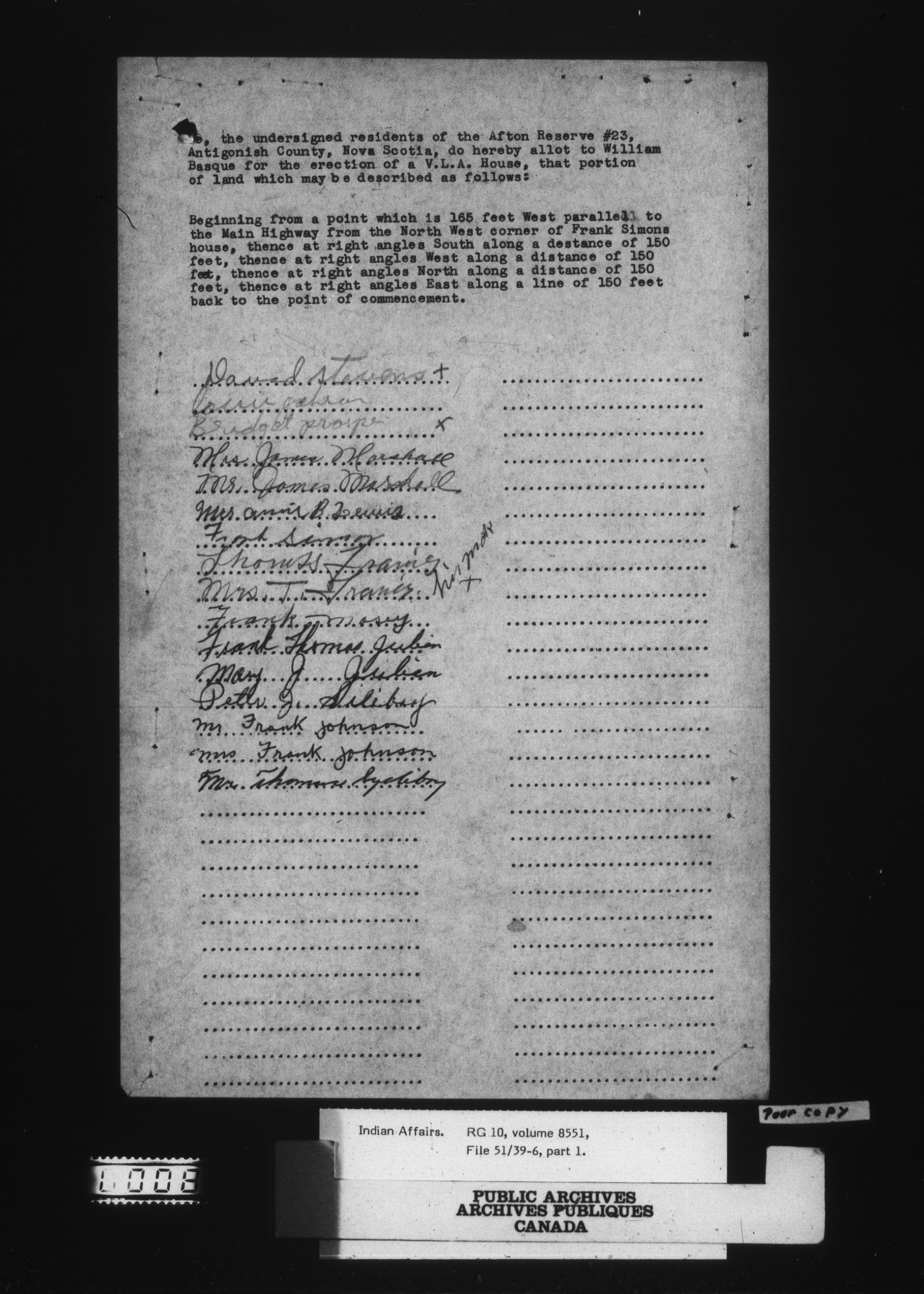 Shubenacadie Agency - Veterans Land Act - William Basque