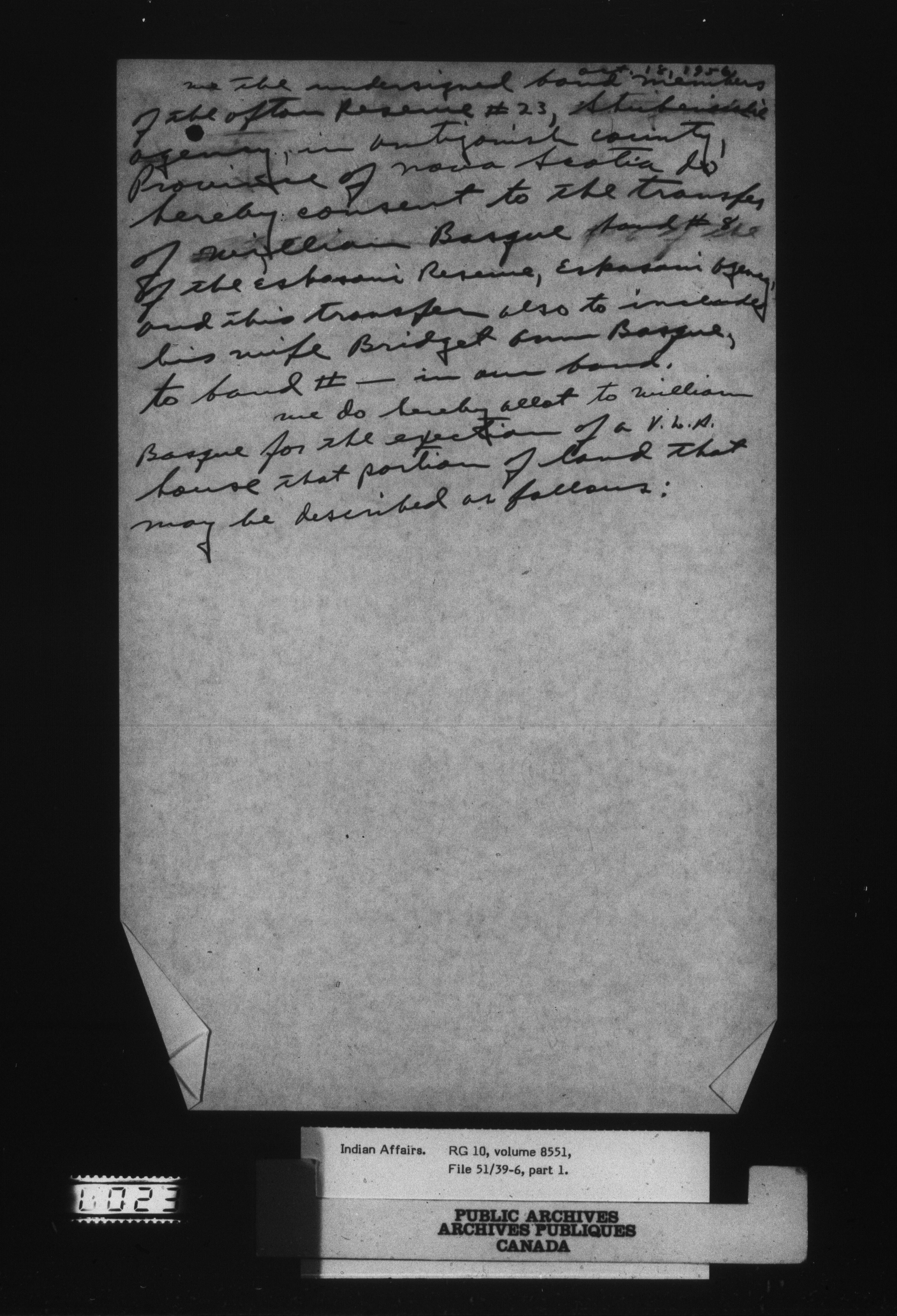 Shubenacadie Agency - Veterans Land Act - William Basque