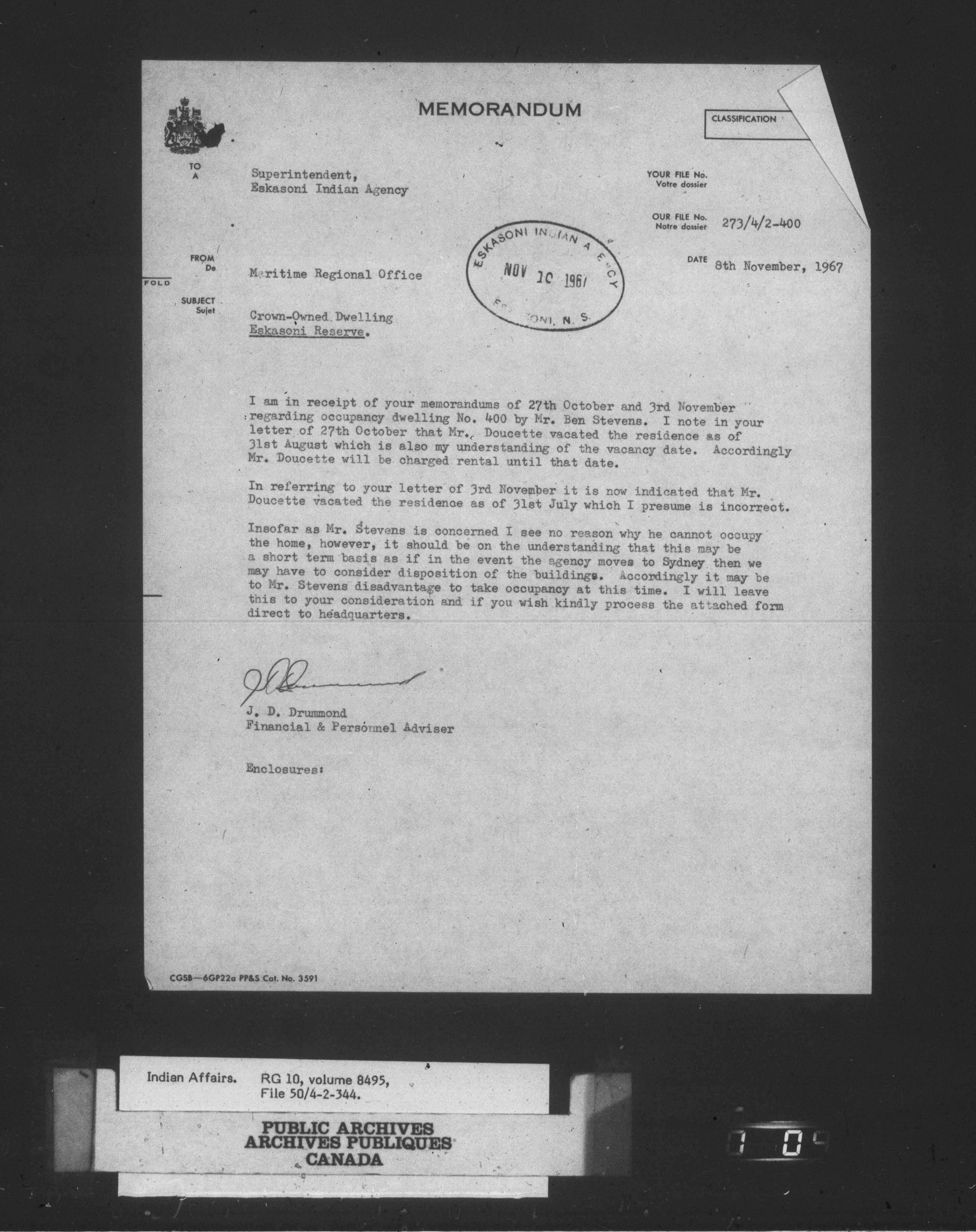 Department of Indian Affairs : Eskasoni Agency : C-15141