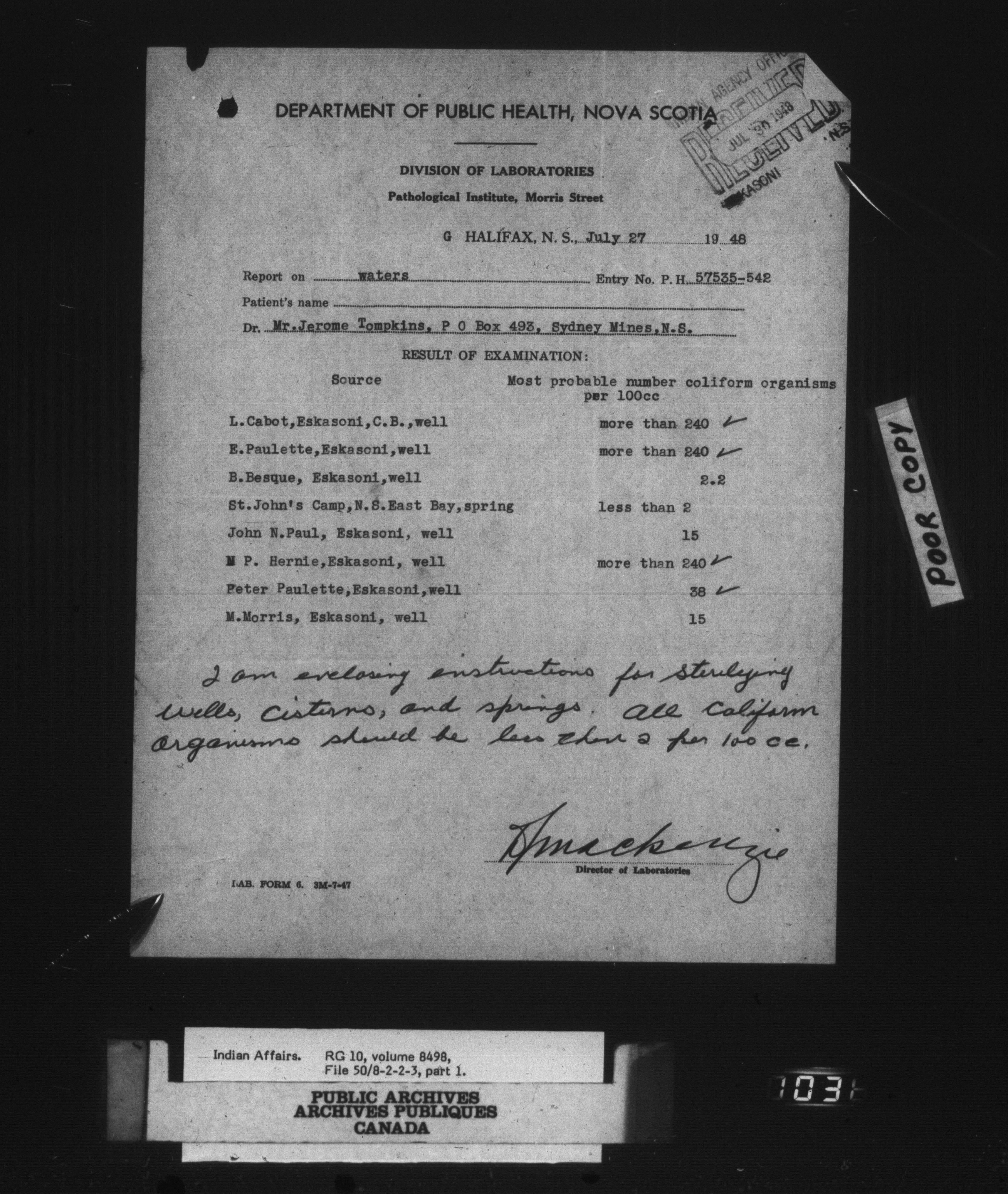 Department of Indian Affairs : Eskasoni Agency : C-15143