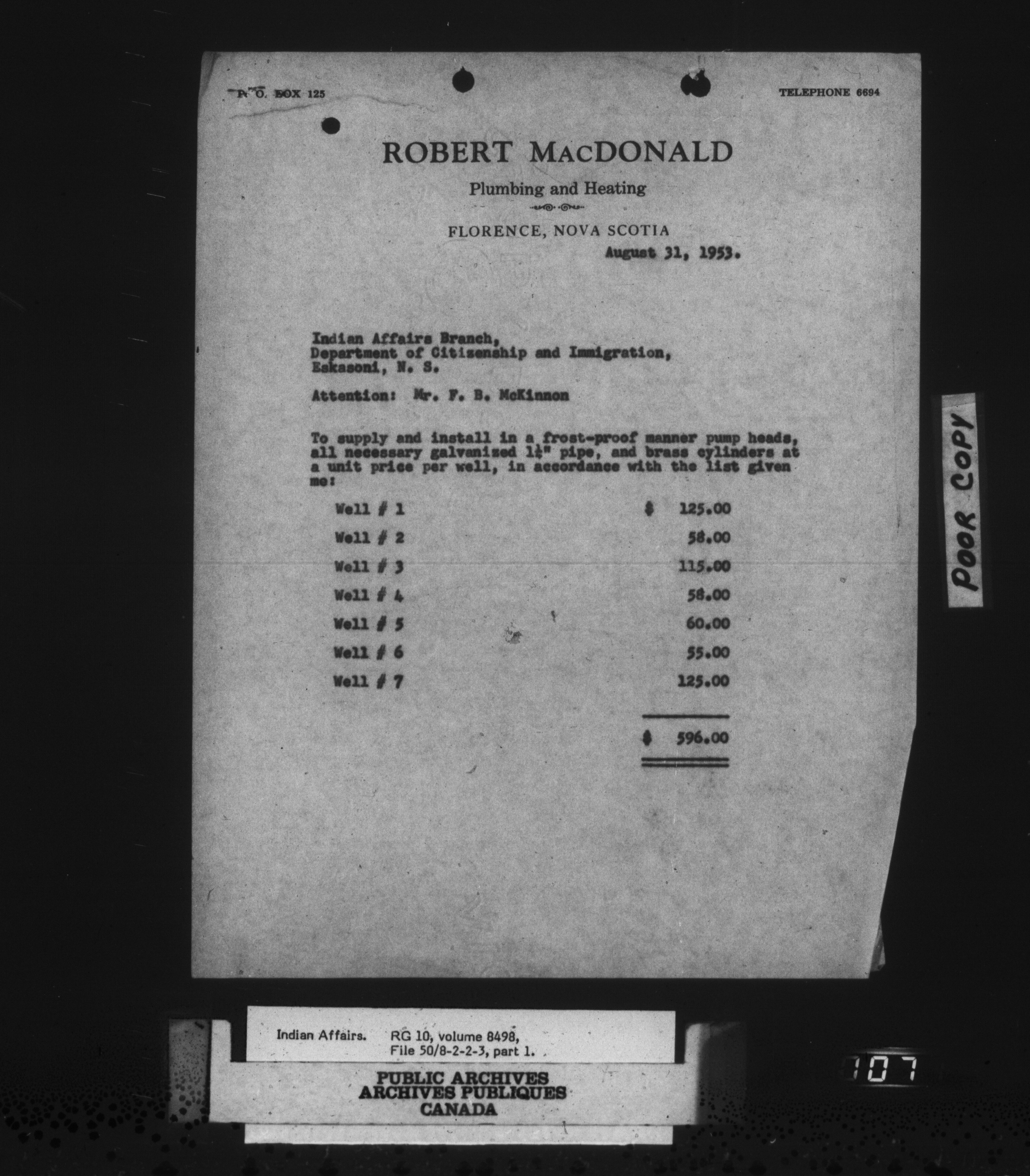Eskasoni Agency - Wells and Water Works