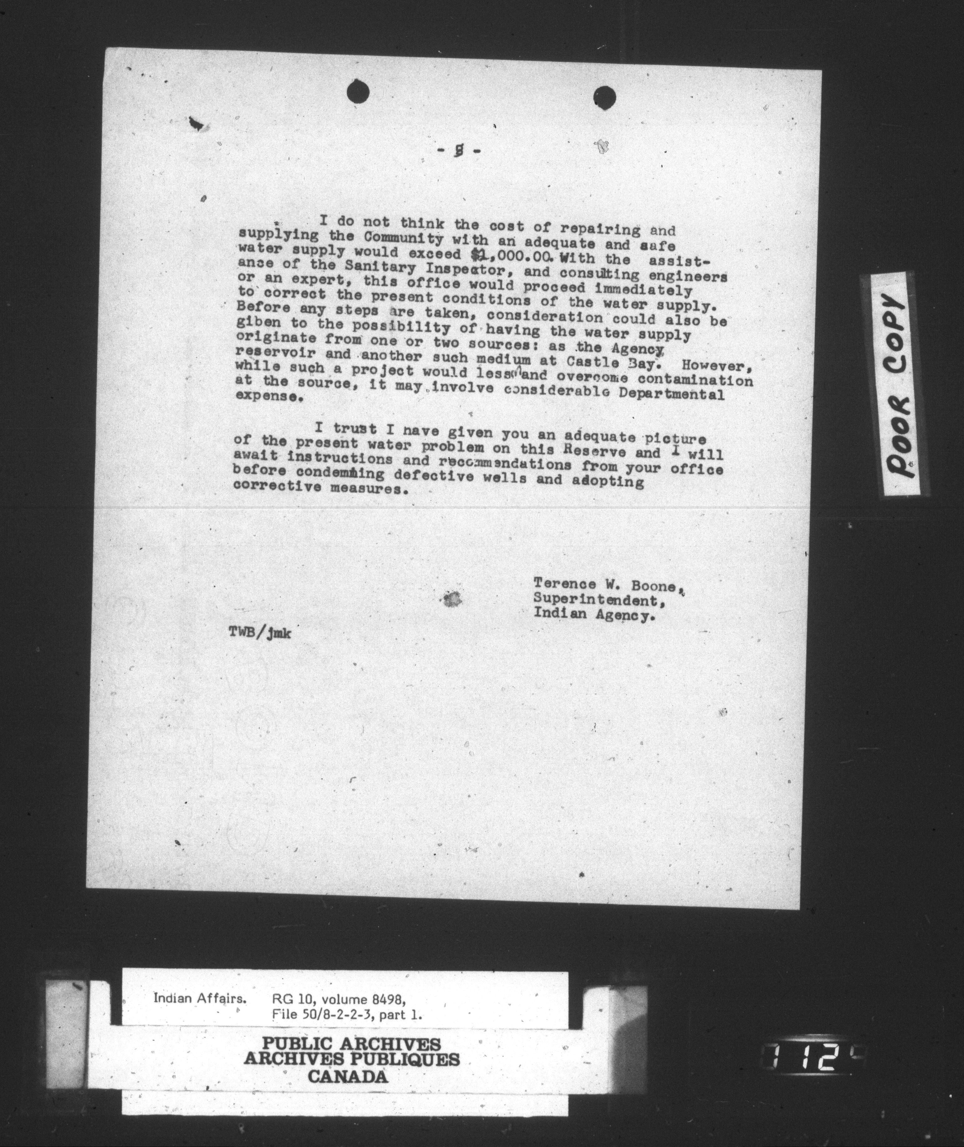 Eskasoni Agency - Wells and Water Works - Sydney, Nova Scotia