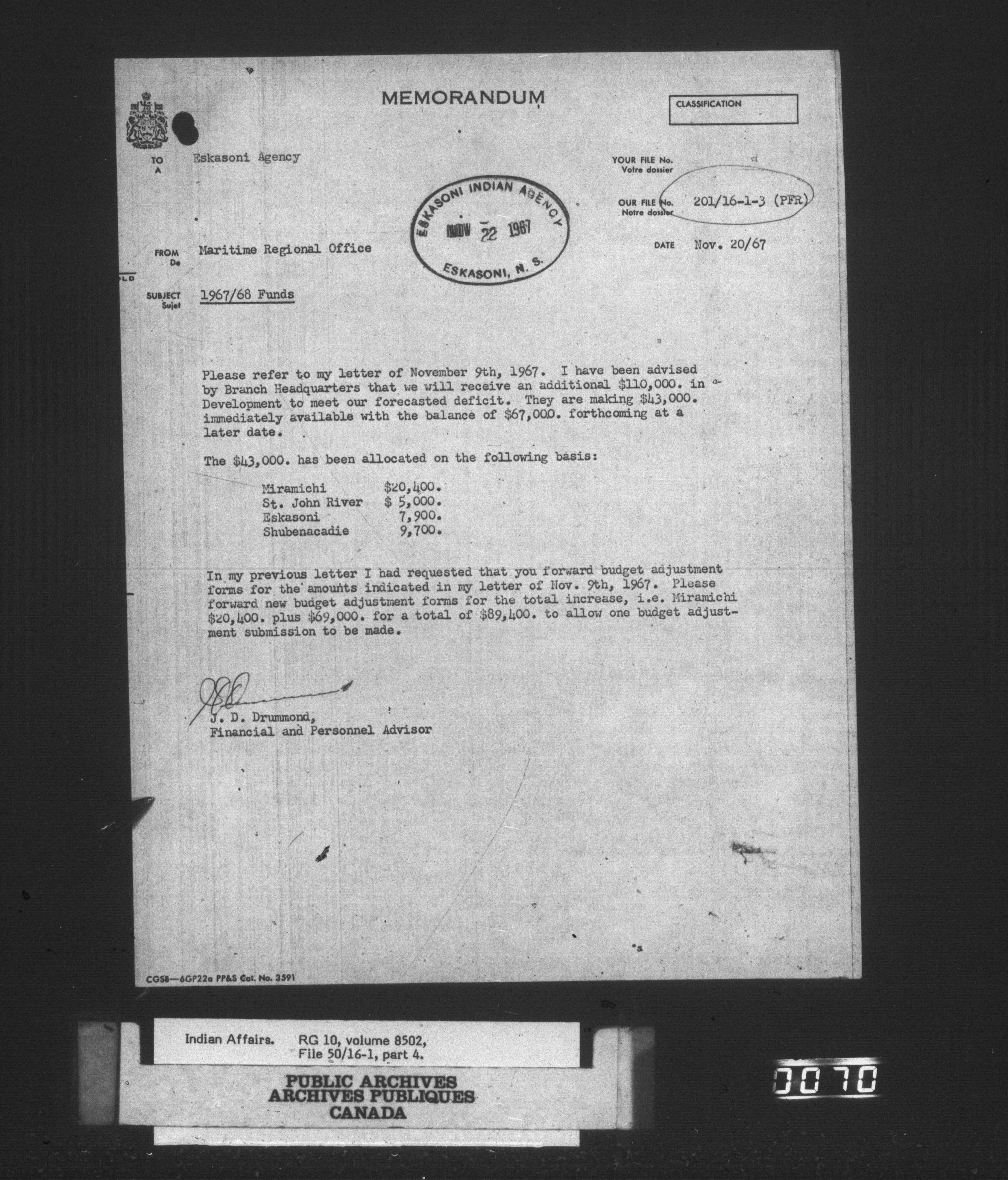 Department of Indian Affairs : Eskasoni Agency : C-15146