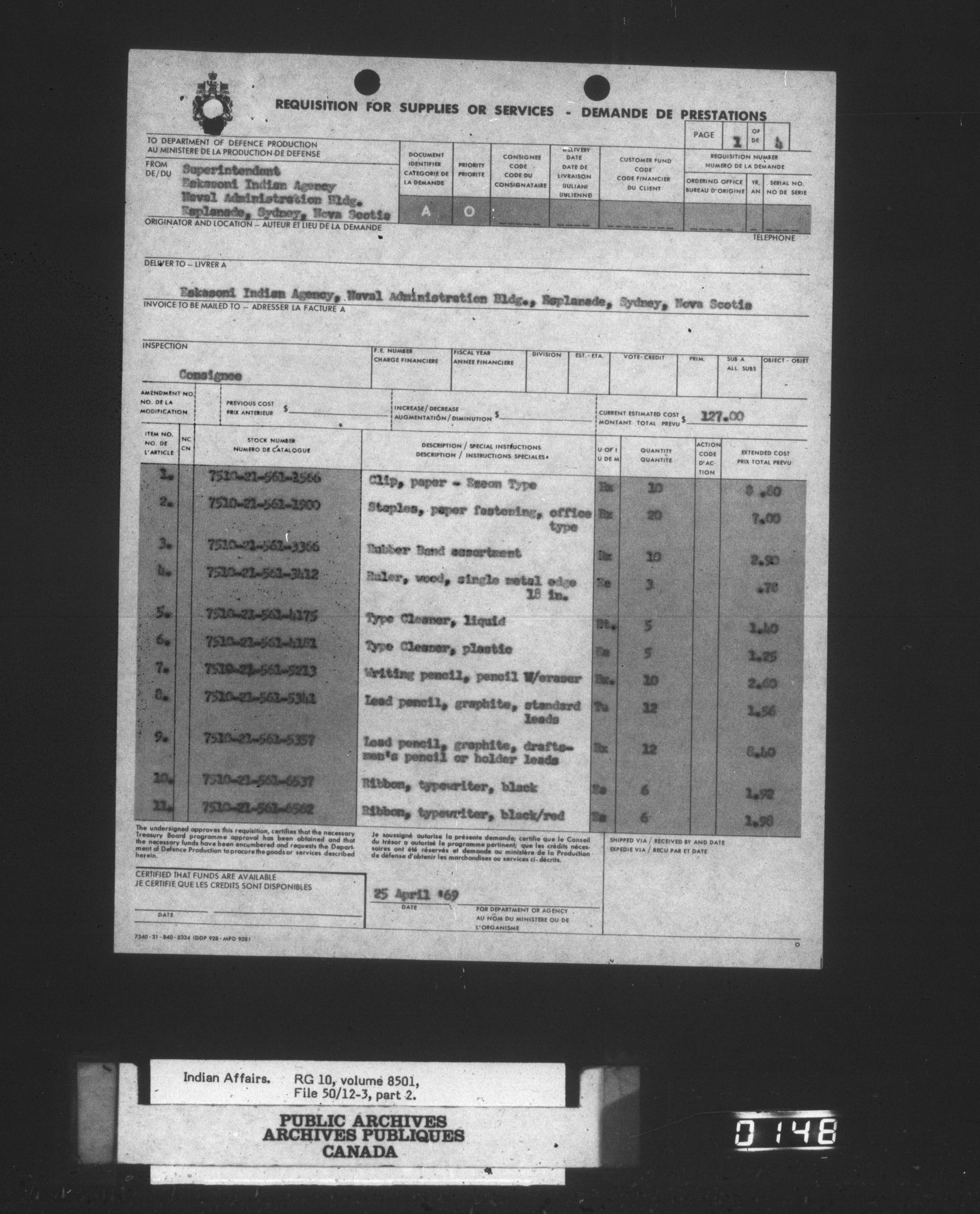 Eskasoni Agency - Stationery and Supplies - pt 2