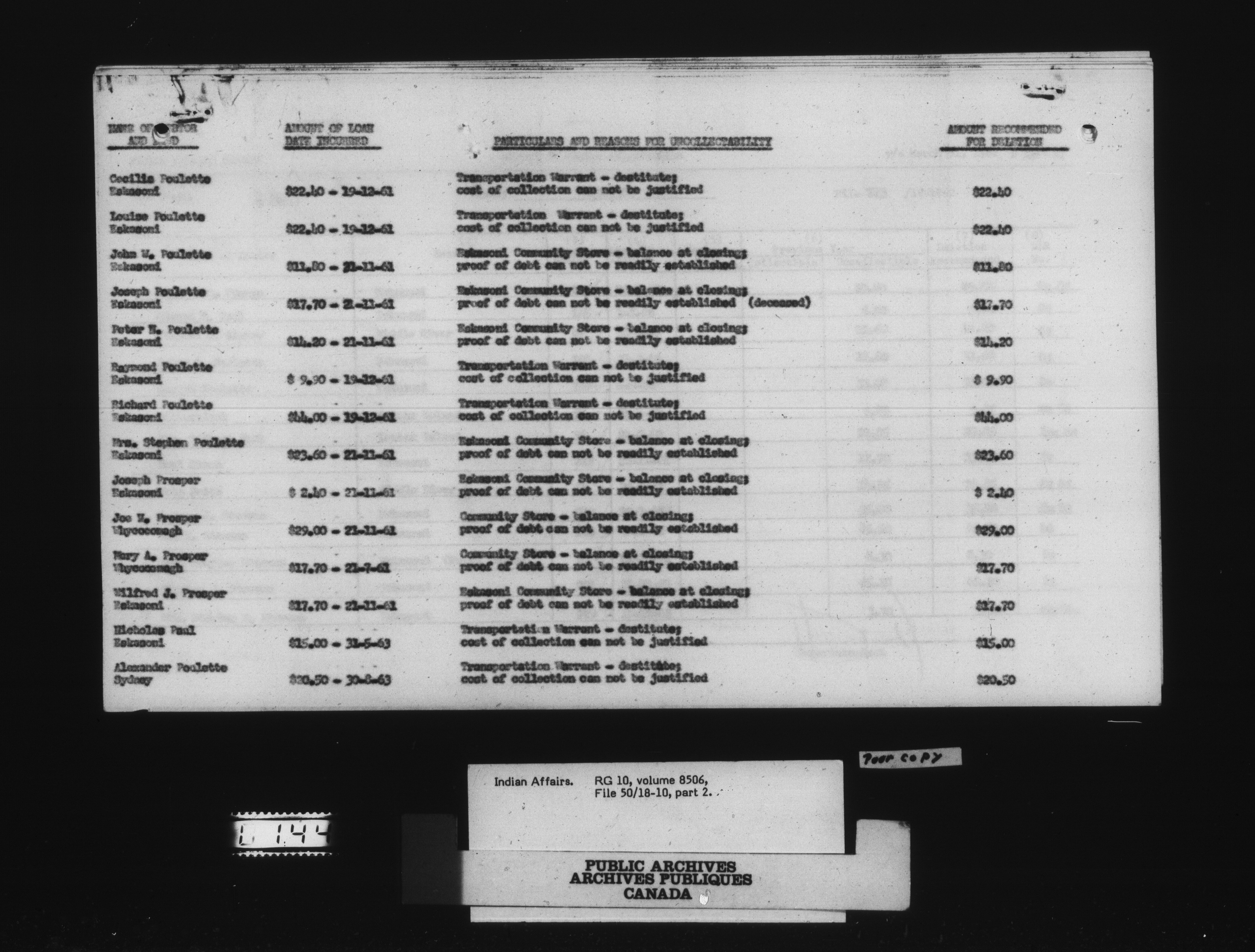 Eskasoni Agency - Debts - pt 1 to pt 2