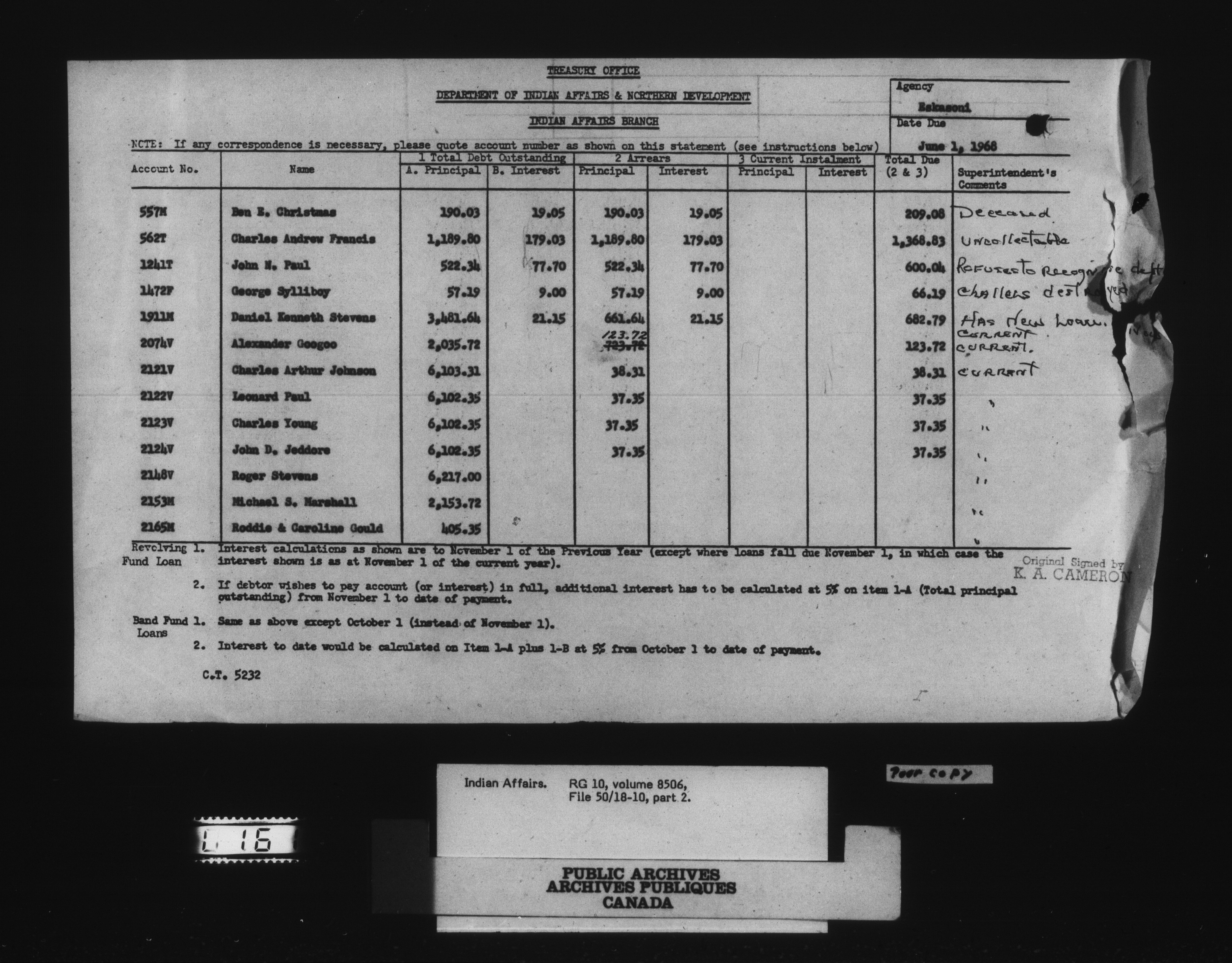 Department of Indian Affairs : Eskasoni Agency : C-15149