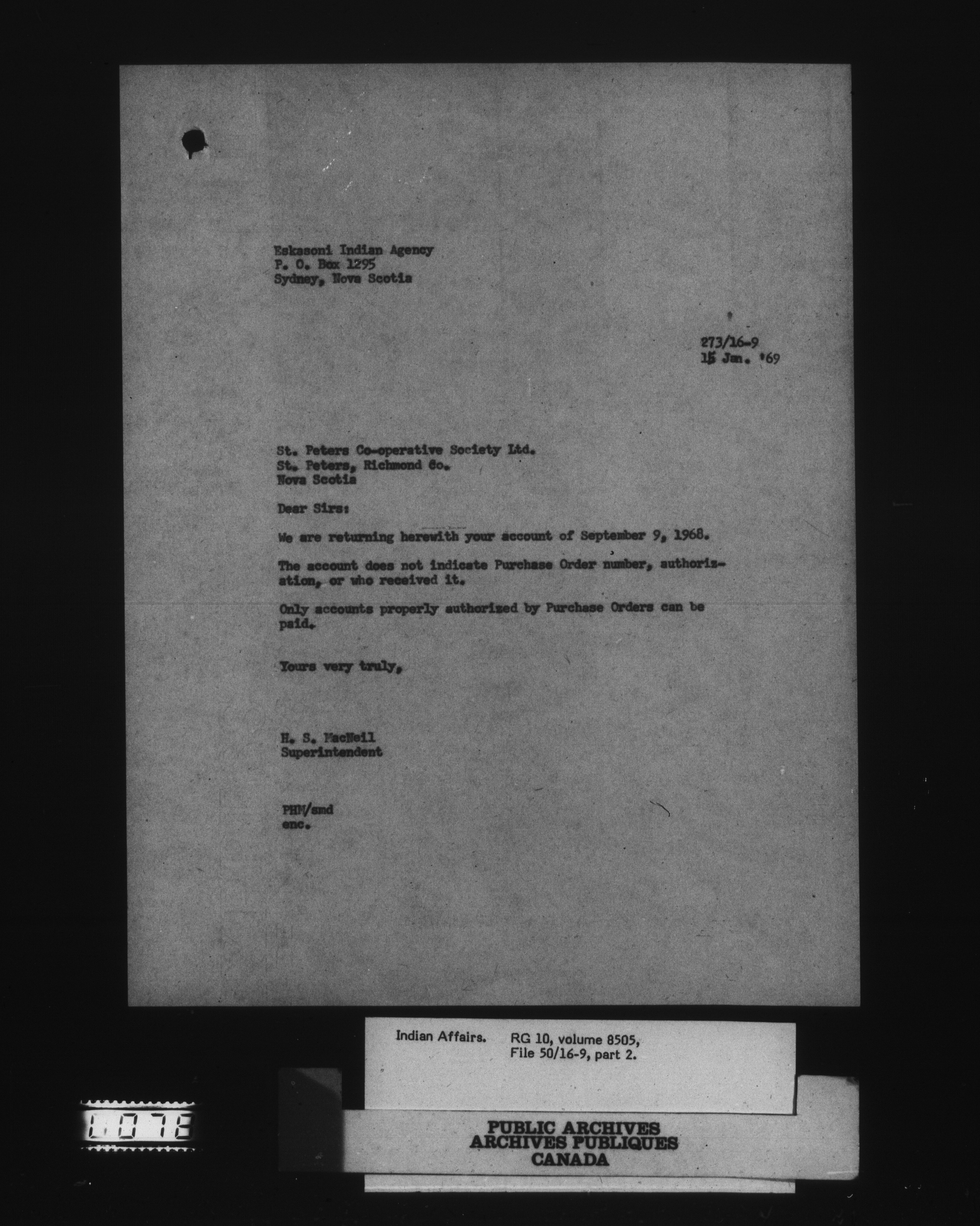 Department of Indian Affairs : Eskasoni Agency : C-15149