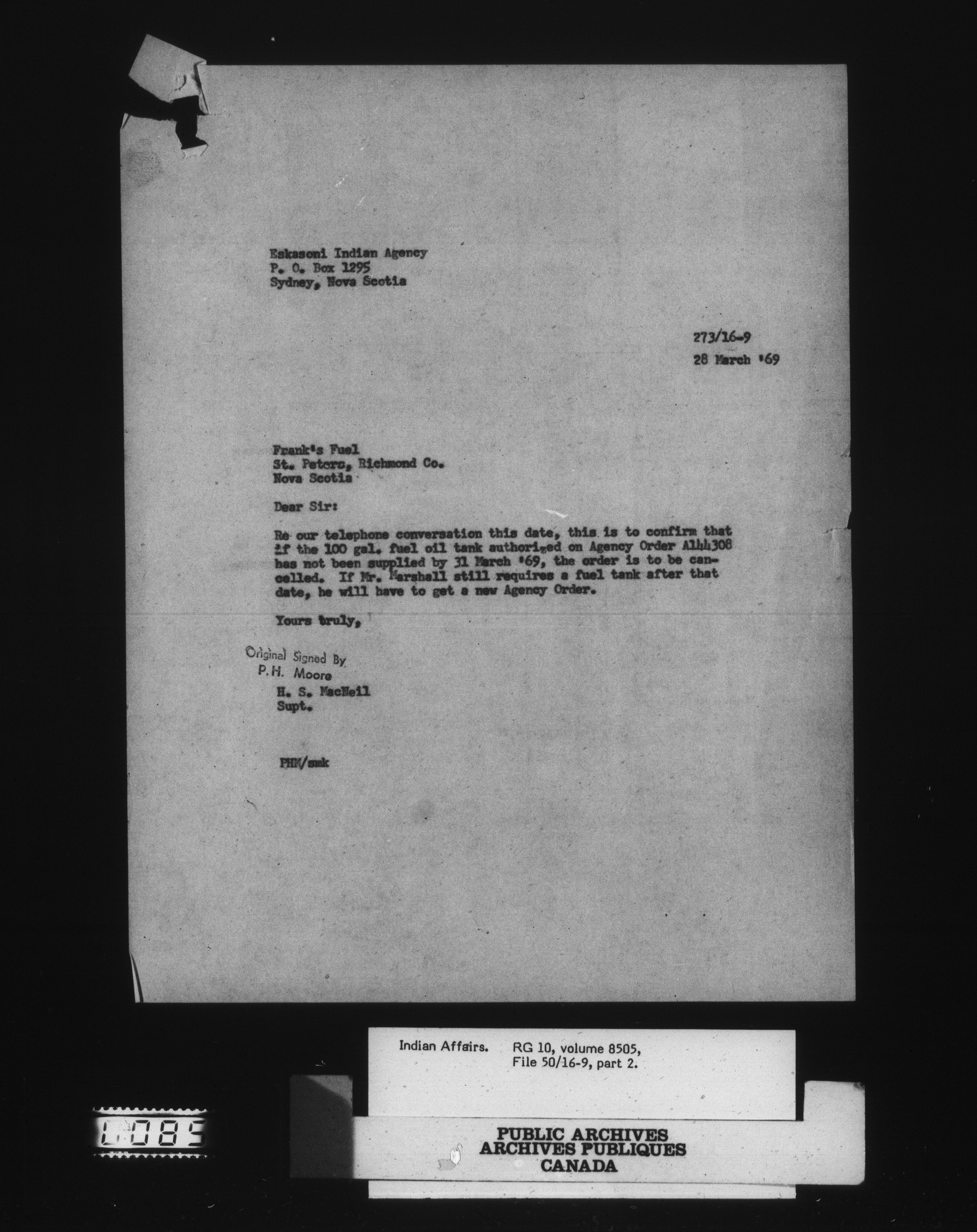 Department of Indian Affairs : Eskasoni Agency : C-15149