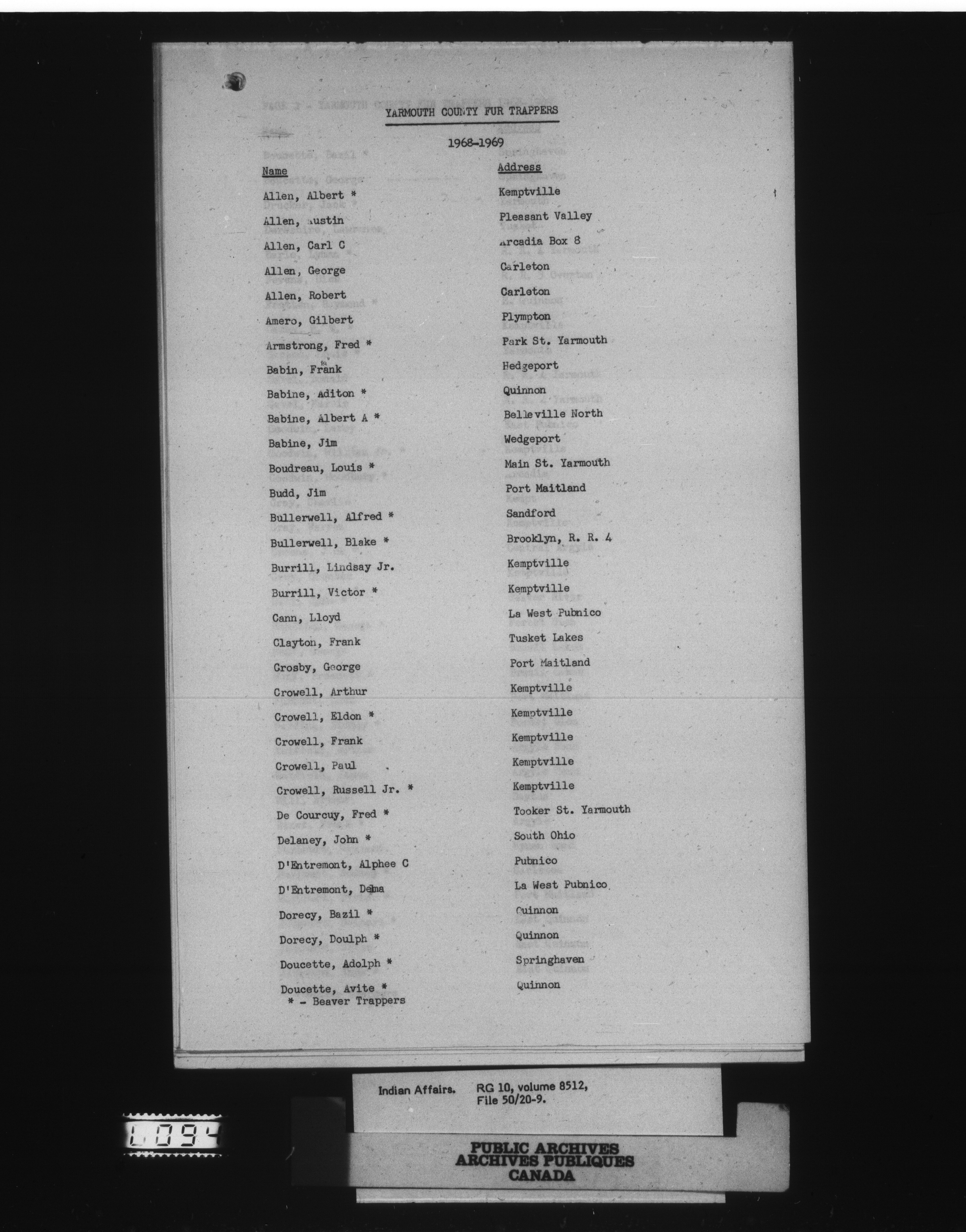 Department of Indian Affairs : Eskasoni Agency : C-15151